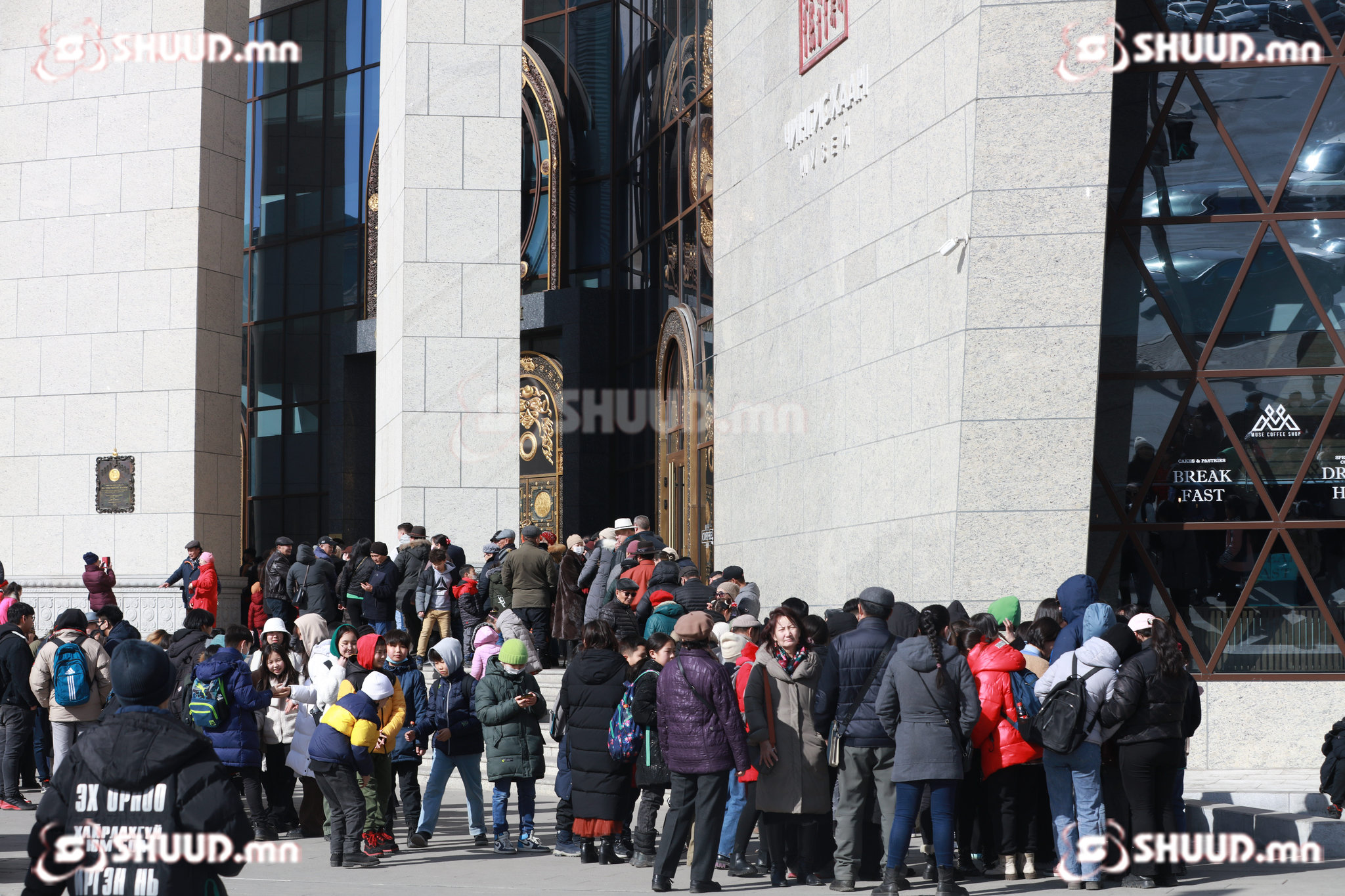 Гуравдугаар сарын 2-ны 14.30 цагийн байдлаар Чингис хаан музейг үзэх гэсэн иргэдийн урт дараалал үүссэн байлаа. Ойр орчмын хүмүүс хоорондоо "Өнөөдрийн үзэх хүн нь болсон гэнэ, маргааш л ирэе дээ" хэмээн хаа нэг тийшээ явцгааж байв. Хүмүүсийн ярьж байсан зүйлийг тодруулахын тулд хамгаалалтанд байсан хоёр цагдаагаас очин асуухад: "Музей 16.00 цаг хүртэл ажиллах тул орох хүмүүсийнхээ тоог хязгаарласан. Өнөөдөр орж чадаагүй хүмүүс маргааш ирэхийг хүсэж буцааж байна" гэв.