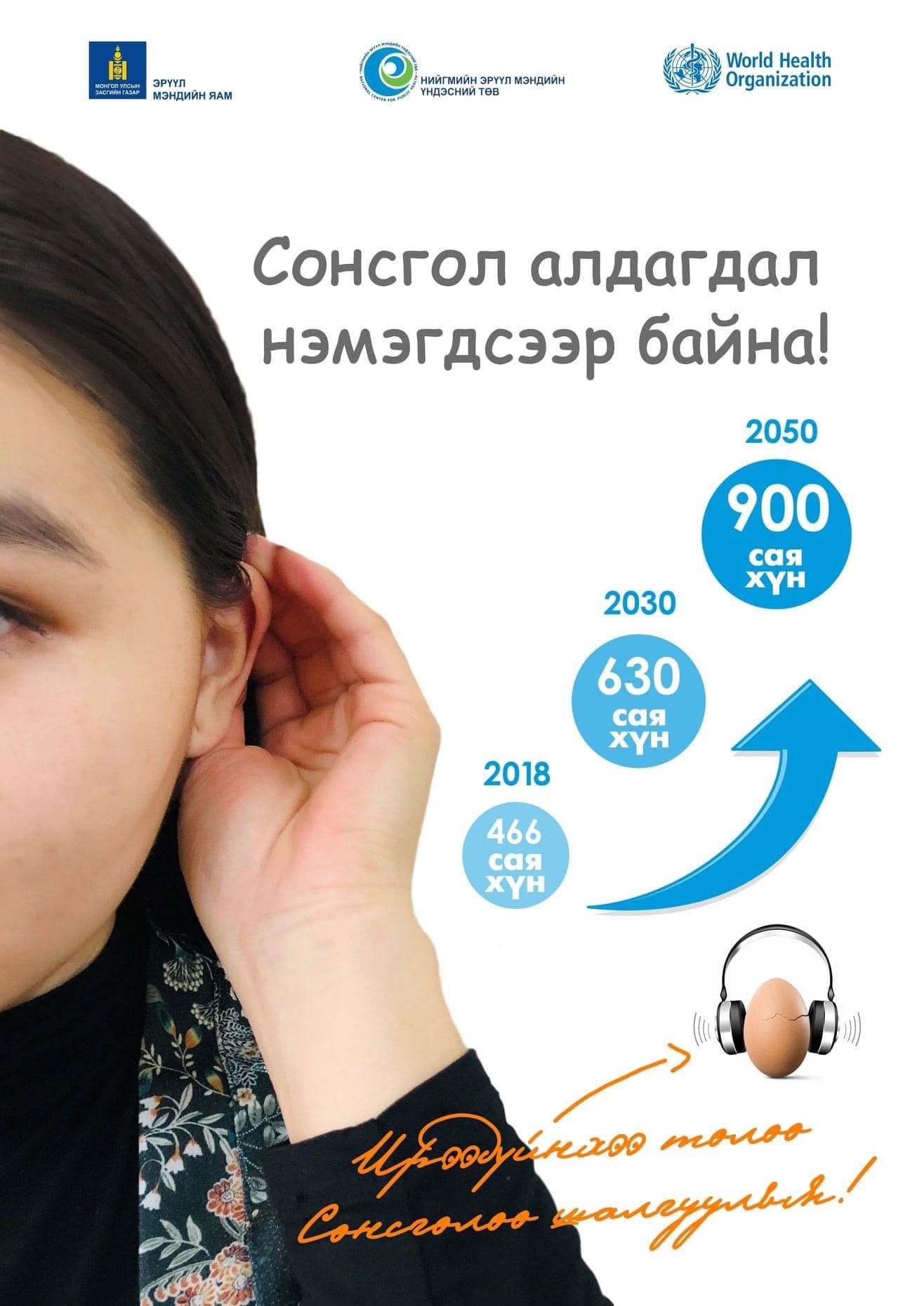 Урьдчилсан тооцоогоор сонсгол бууралт, дүлийрэлтийн тоо 2030 онд 630 сая, 2050 онд 900 саяд хүрэхээр байна.