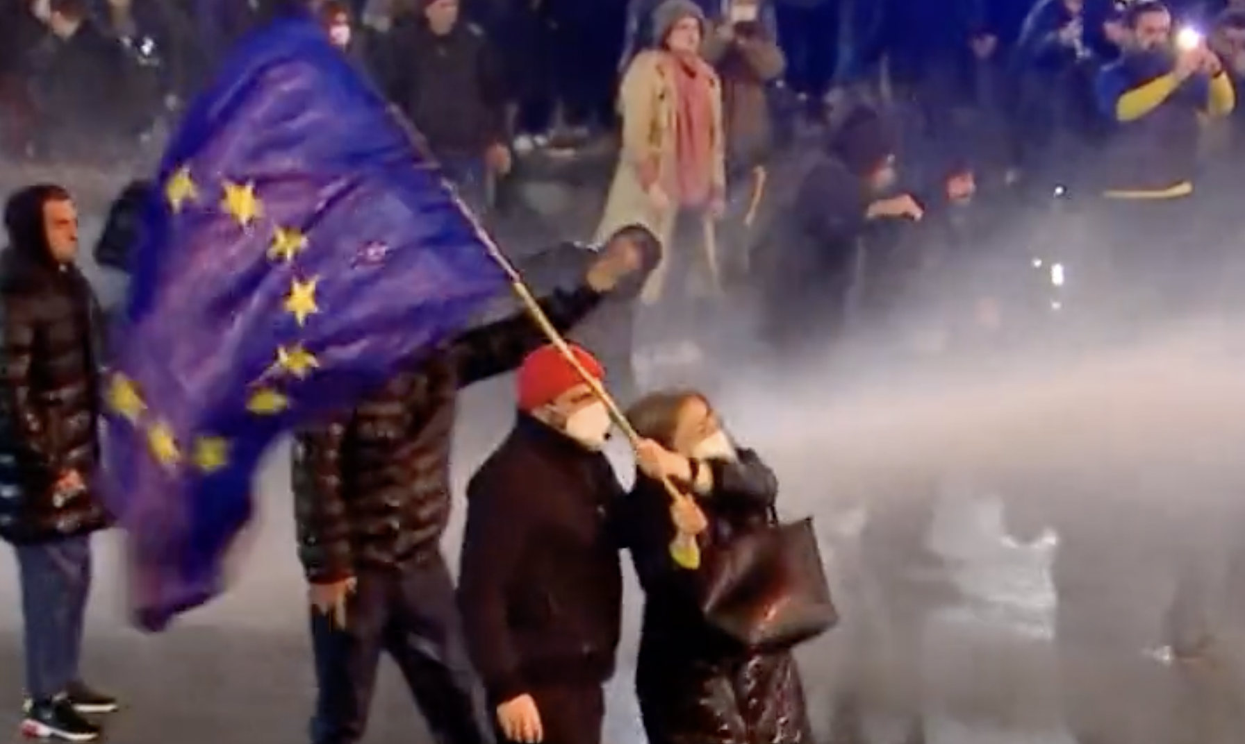 Ингээд мөн өдрийн орой Гүржийн нийслэл Тбилиси хотод өргөн цар хүрээтэй эсэргүүцлийн ажиллагаа эхэлж, хоёр өдөр үргэлжлэв. Даваа гарагийн үдэш гэхэд 10 мянга орчим хүн парламентын ордны гадаа цуглажээ. Тэд Гүрж болон Европын холбооны далбаатай ирсэн байв. Хууль сахиулагчид жагсаалыг хүчээр тараахын тулд усан буу ашигласны дараа эсэргүүцэгчид парламентын ордны хашаа руу дайрчээ. Үүний хариуд тусгайгийнхан давшиж, нулимс асгаруулагч хий ашигласан талаар ВВС агентлагийн сэтгүүлч мэдээлсэн байна.