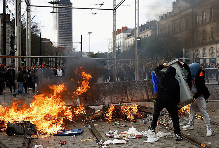 Эх сурвалжийн мэдээлснээр, парламент тэтгэврийн хуулийг дэмжсэний дараа эсэргүүцлийн жагсаал эмх замбараагүй байдалд шилжин, Францын томоохон хот бүрт үймээн дэгдэж байгаа аж. Олон мянган хүн цугласан эсэргүүцлийн жагсаалын үеэр дугуй, хог шатааж, хууль сахиулагчид руу чулуу, лонх шидэж байгаа гэнэ. Үүний хариуд цагдаагийнхан бороохой, гэрэлт дуут гранат болон нулимс асгаруулагч хий ашиглаж, олон зуун хүнийг саатуулан баривчилжээ.