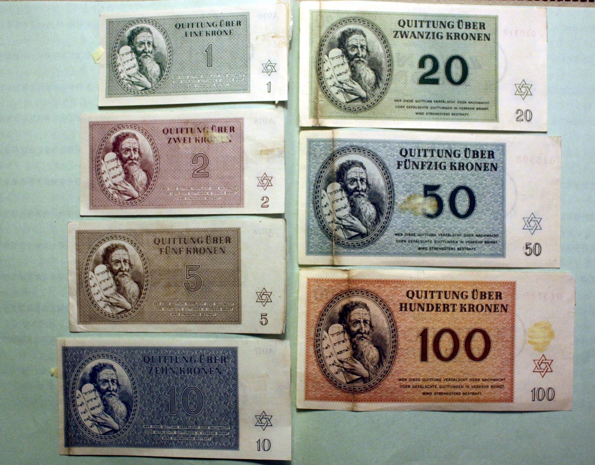 1943 онд Терезиенштадт гетто /өнөөгийн Чехийн Терезин хотын нутаг/-д Европын Улаан загалмайн нийгэмлэгийн төлөөлөгчид очихоор болж, геттогийн захиргааныхан үүнд бэлдэж эхлэв. Ингээд 1943 оны дөрөвдүгээр сард Еврейн өөрөө удирдлагын банк байгуулан, гетто-крон гэх тусгай валют гаргажээ. Ийм хуурамч мөнгө гарган, энгийн амьдрал өрнөж байгаа гэсэн төсөөлөл бий болгох зорилготой байж. 1943-1945 оны хооронд энэ банканд ердөө 79 данс л нээсэн байв, учир нь гетто-крон нь ямар ч үнэ цэнэгүй байжээ.
