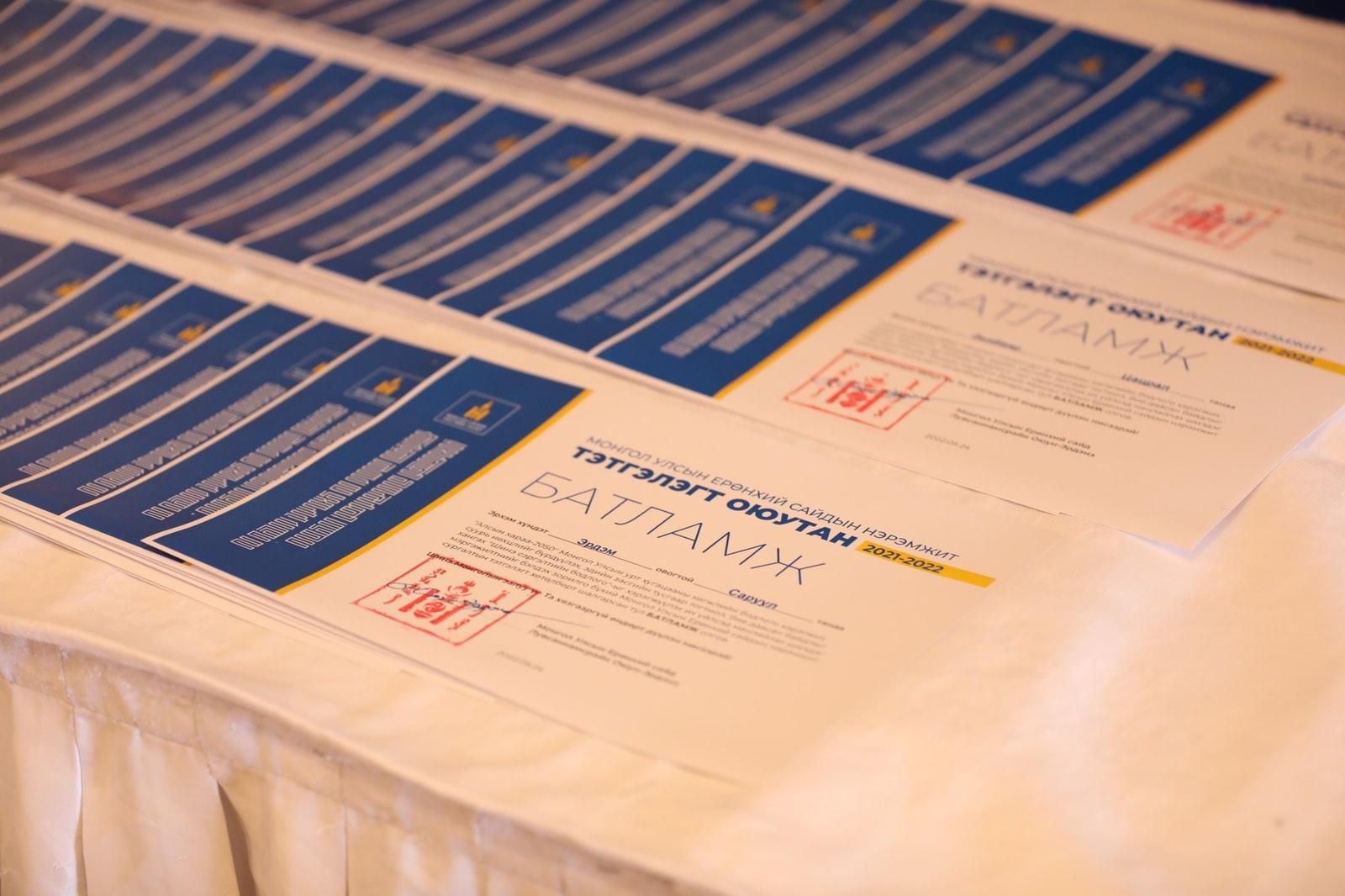 • Дотоодын сургалтын байгууллагын 50 хүртэлх шилдэг суралцагч тус бүрд 10,000,000.0 (арван сая) хүртэл төгрөгийн тэтгэлэг олгоно.