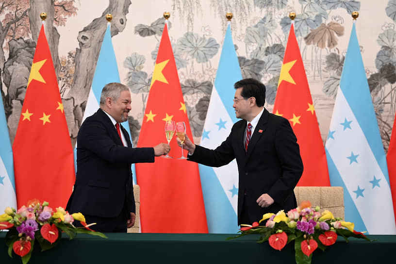 Эх сурвалжийн мэдээлснээр, БНХАУ-ын Гадаад хэргийн сайд Цинь Ган болон Гондурасын Гадаад хэргийн сайд Эдуардо Энрике Рейна нар дипломат харилцаа тогтоох тухай хэлэлцээрт Бээжин хотноо гарын үсэг зурсан байна. Гондурас улс Тайванийг БНХАУ-ын салшгүй хэсэг гэж заасан "нэг Хятад" зарчмыг хүлээн зөвшөөрсөн тул Тайваниас дипломат харилцаагаа тасалжээ.