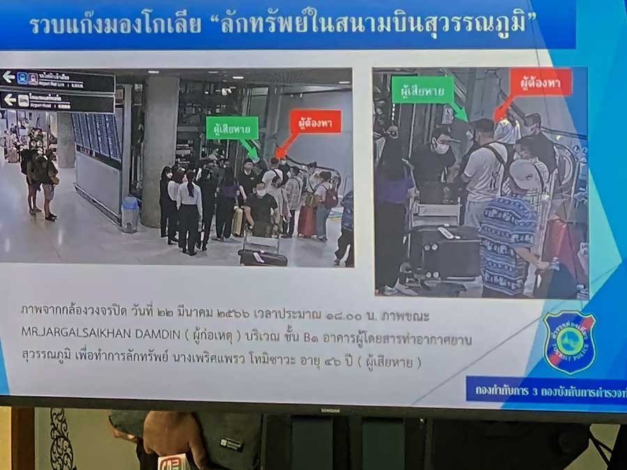Ажиглалтын камер дээр Монголын гурван иргэн эрэгтэй хоёр эмэгтэйтэй хамт жуулчдын мөнгийг хулгайлж байгаа нь бичигдсэн байна. Эдгээр иргэнтэй хамт хулгай хийсэн хоёр эмэгтэйг хараахан баривчлаагүй байгаа гэж Суварнабхуми нисэх буудлын цагдаагийн нхэлтэс мэдээлжээ.
