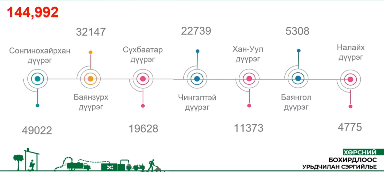Тэрбээр “Улаанбаатар хотын гэр хороолол 2000 оноос тэлсэн. Гэр хорооллын бүс газрын хэвгийн дээд хэсэгт төвлөрсөн байдаг. Энэ нь нянгийн бохирдол хөрсөнд тархах, гүний усанд нэвчих үндсэн шалтгаан болж байна.