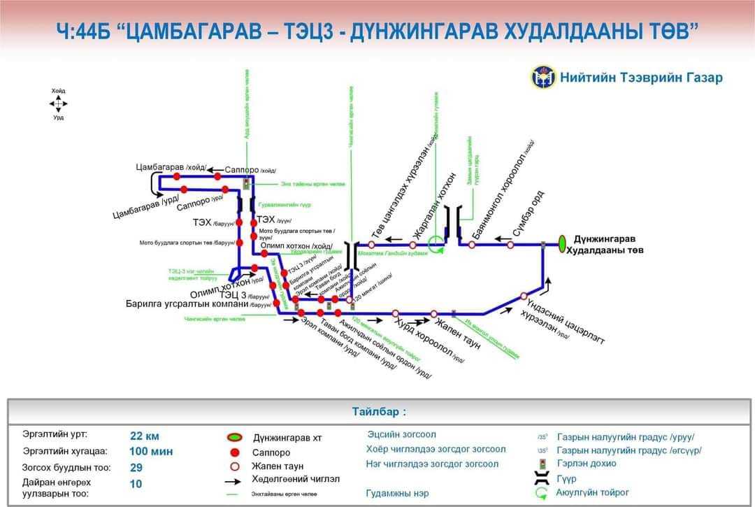 Ч:44 "Нарангийн гол - ТЭЦ 3 - Дүнжингарав худалдааны төв" гэсэн үндсэн чиглэлийг