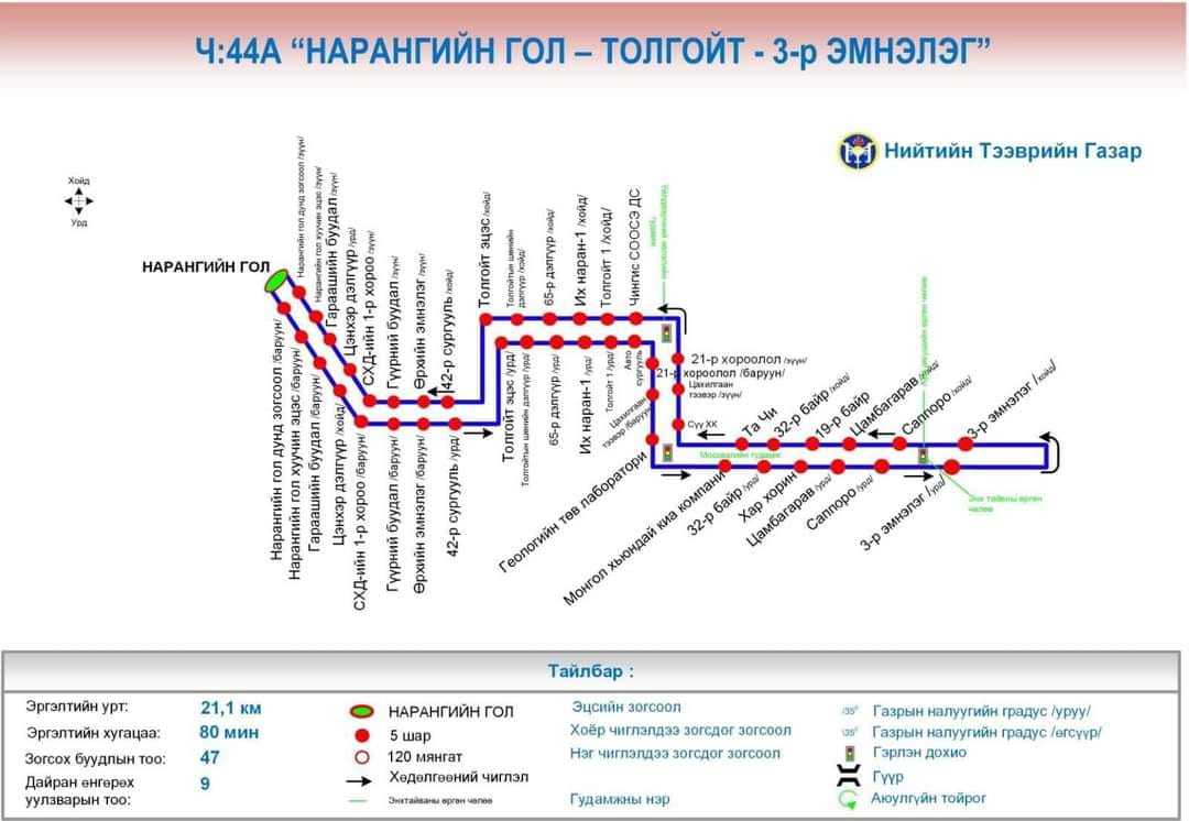 Ч:44А “Нарангийн гол-Толгойт-3-р эмнэлэг”,