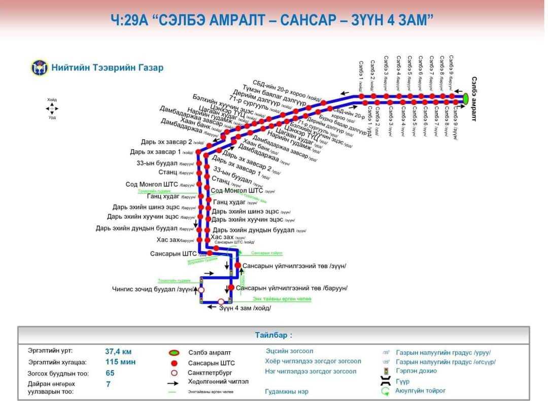 Ч:29А “Сэлбэ амралт-Сансар-Зүүн 4 зам”,