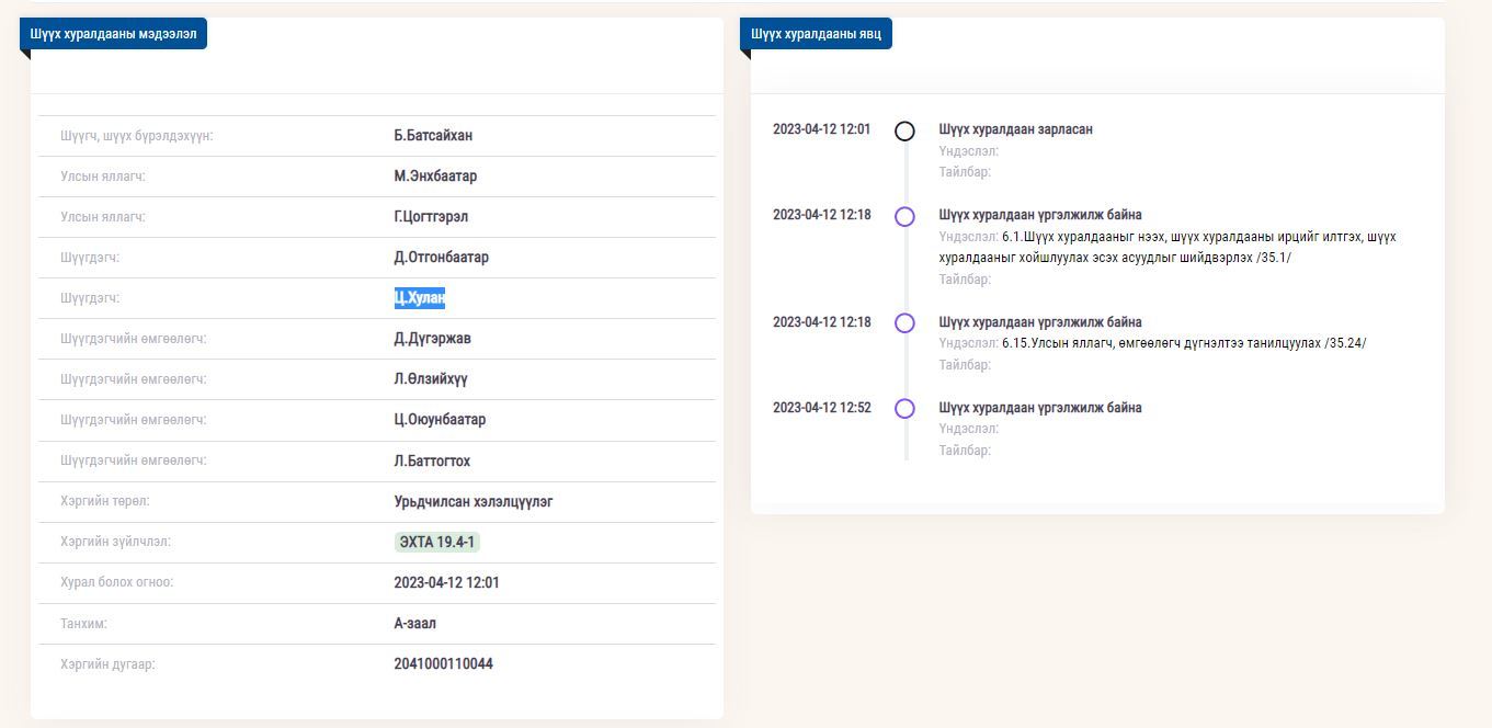Ц.Хуланд холбогдох хэргийн шүүхийн урьдчилсан хэлэлцүүлэг болж байна