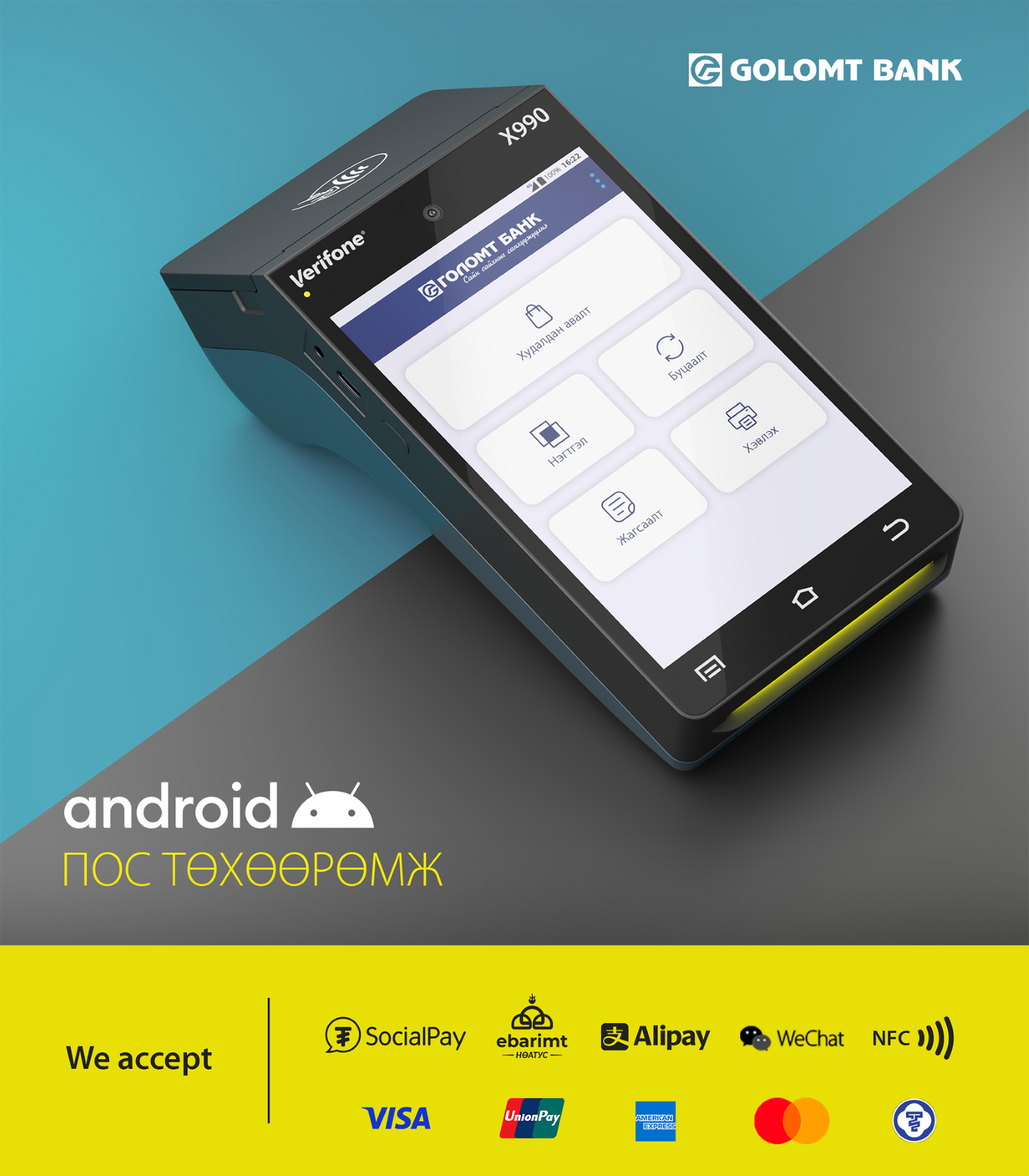 Голомт банк Монгол Улсын банк, санхүүгийн салбарт хамгийн олон төрлийн төлбөр, тооцооны шийдлийг харилцагчдадаа санал болгож, мерчантын үйлчилгээгээр салбартаа тэргүүлсээр ирсэн. Хамгийн олон төрлийн картыг уншдаг Голомт банкны ПОС төхөөрөмж нь AliPay, WeChat, UnionPay QR-ийг уншдаг боллоо. Ингэснээр бизнес эрхлэгчдийн хувьд олон улсад өргөн ашиглагддаг дижитал хэтэвчийг төлбөр тооцоондоо хүлээн авч, газар дээр нь худалдаа, үйлчилгээ үзүүлэх боломж бүрдэж байна.