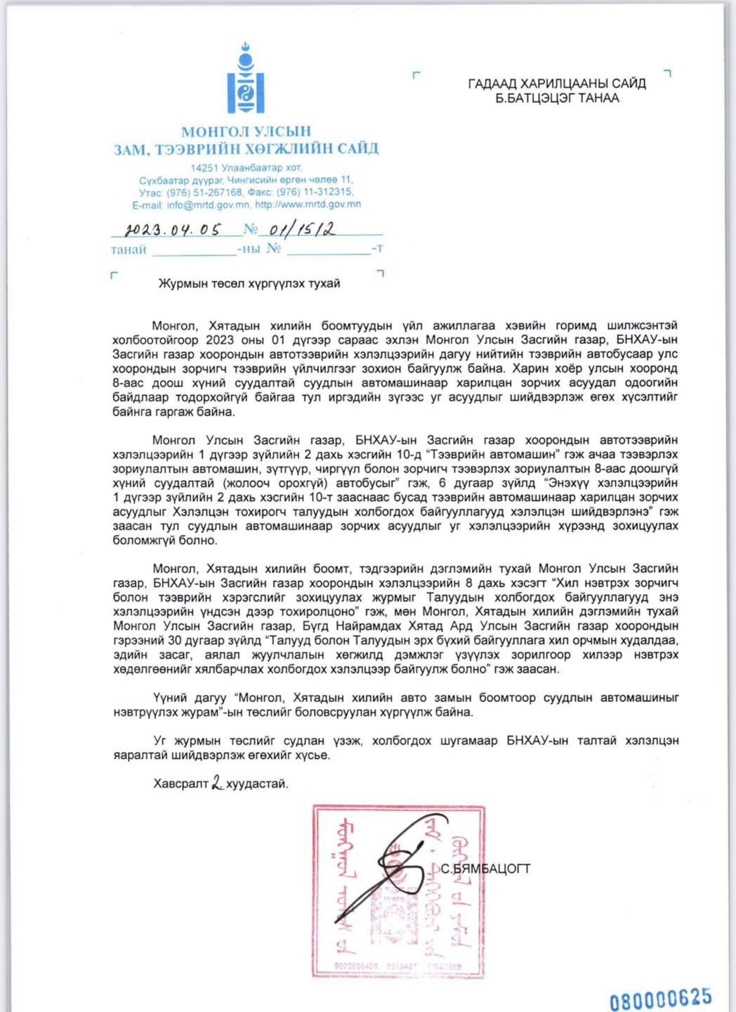 Мөн Монгол Улсын Засгийн газар, БНХАУ-ын Засгийн газар хоорондын автотээврийн хэлэлцээрт суудлын автомашинаар харилцан зорчих зохицуулалтыг тусгахыг хичээж байгаа болно.