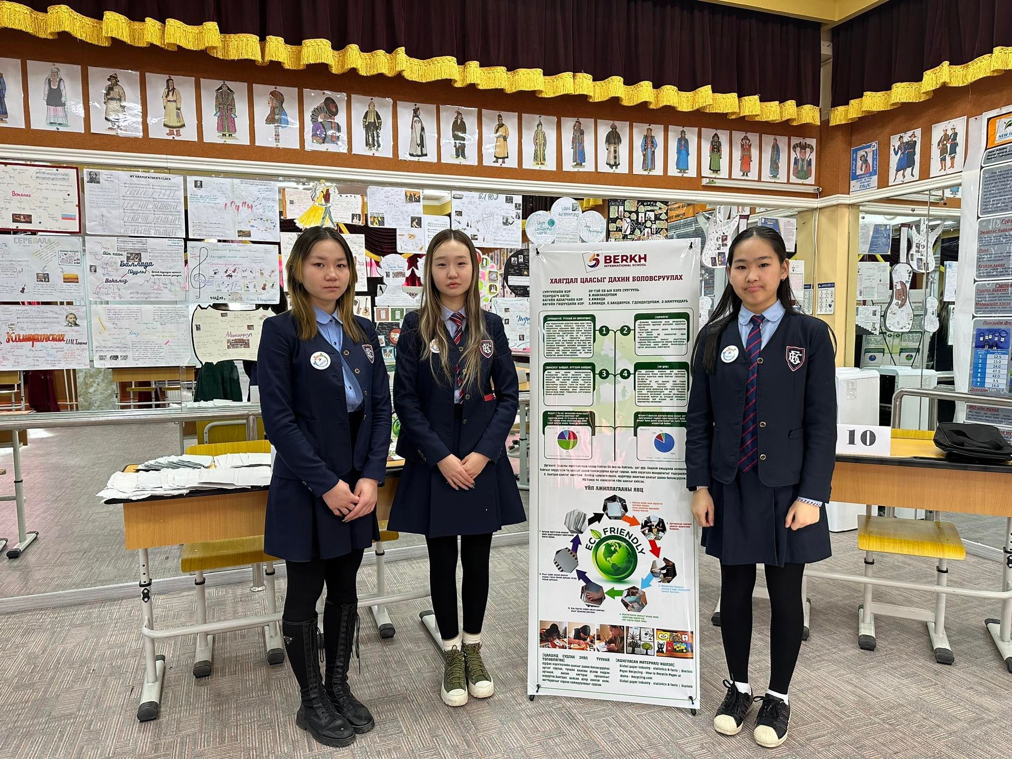 Хэнтий аймгийн ерөнхий боловсролын Бэрх сургуулийн наймдугаар ангийн сурагчид хаягдал цаасыг дахин боловсруулж байна.