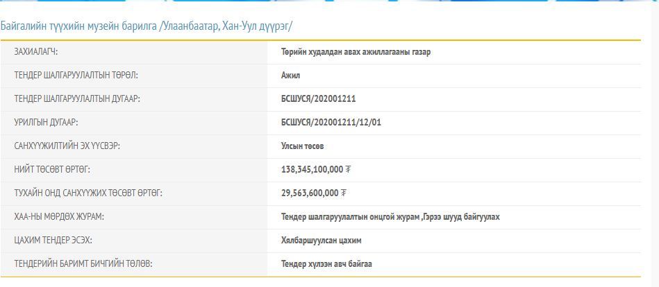 Байгалийн түүхийн музейг 138 тэрбумаар барина