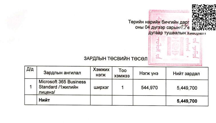 Дөрөвдүгээр сард мөн л 400 гаруй сая төгрөгийн орлогыг мэдээллээ нийтэлжээ. Үүнээс ОХУ-д болсон Хөгжлийн санхүүжилтын асуудлаар НҮБ-ын Эдийн засаг, нийгмийн чуулга уулзалтад Б.Анар, И.Батхүү нарын 4 хүнийг оролцуулахад 66 сая төгрөгийн зарлага гаргасан байна. Мөн Блүүмбергийн системд нэвтрэхэд 17,9 сая төгрөг microsoft оффисын программын лиценз худалдан авахад 5,4 сая төгрөг гээд цалингийн зардлаас бусад таван сая төгрөгөөс дээш үнийн дүн бүхий зарлагын хэсэгт 90 гаруй сая төгрөг мэдээлжээ.