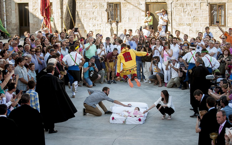 Испанийн Кастилья де Мурсия хотод жил бүр хүүхэд дээгүүр харайх наадмыг зохион байгуулдаг. Хүүхэд дээгүүр харайвал хүүхдийг хараал болон муу бүхнээс хамгаалдаг гэж үздэг эртний уламжлалтай холбоотой аж. Ийм зан үйл нэг жилийн хугацаанд л хүүхдийг хамгаалдаг тул El Colacho гэх энэ наадмыг жил бүр зохион байгуулдаг гэнэ.