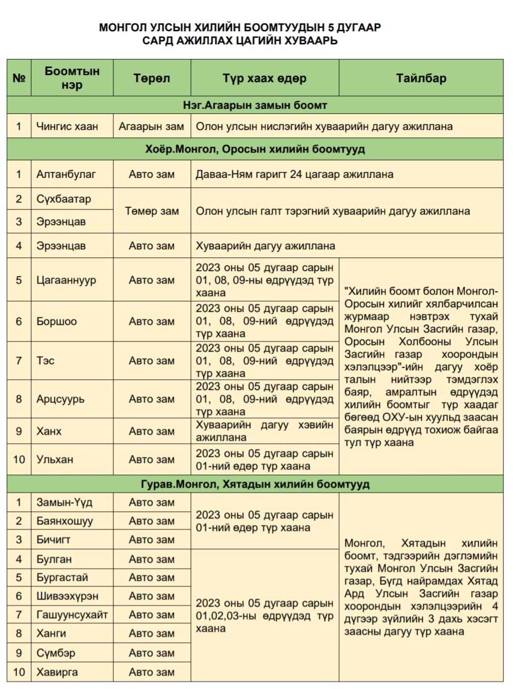 Тодруулбал, Монгол, Хятадын хилийн боомт, тэдгээрийн дэглэмийн тухай, Монгол Улсын Засгийн газар, БНХАУ-ын Засгийн газар хоорондын хэлэлцээрийн дөрөвдүгээр зүйлийн гурав дахь хэсэгт заасны дагуу түр хаана