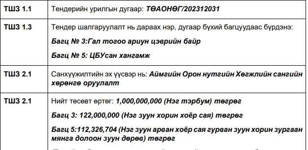 Энэ удаад нэг тэрбум төгрөгөөр Монгол өв соёлын цогцолбор байгуулахаар төлөвлөжээ. Анхаарал татаж байгаа зүйл нь тус тендерийн төсөв өртөг нь НЭГ ТЭРБУМ төгрөг байхад тендерийн баримт бичигт зөвхөн хоёр ажлыг 234 сая төгрөгөөр хийлгэхээр тусгажээ.