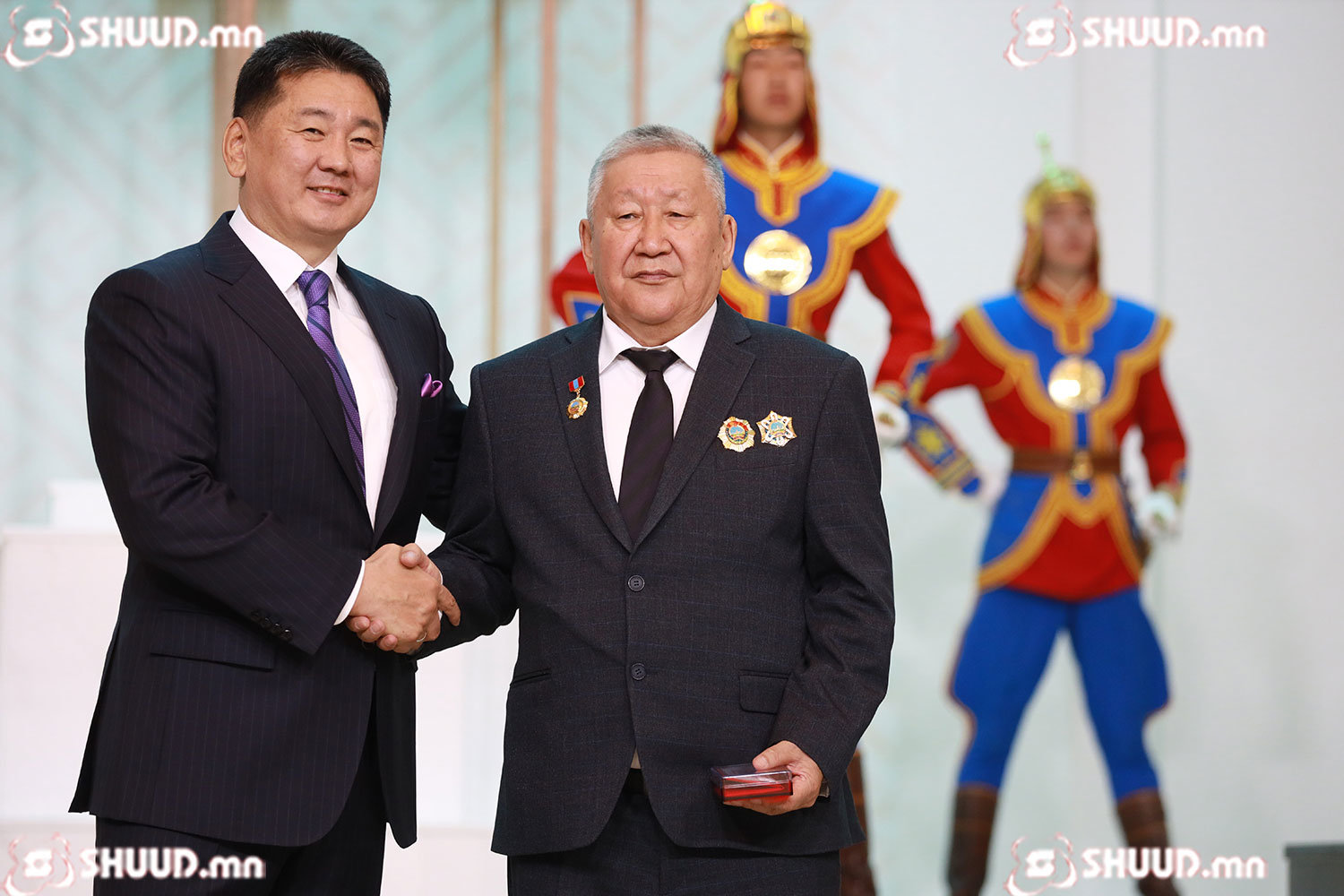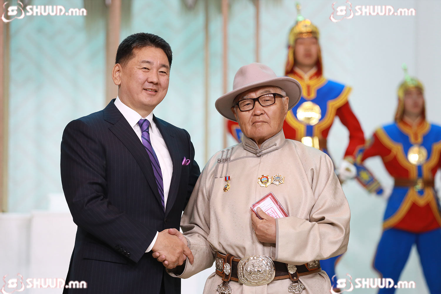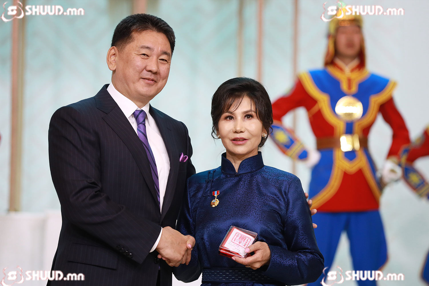 Монгол Улсын Ерөнхийлөгч Ухнаагийн Хүрэлсүх төрийн дээд цол, одон, медаль хүртсэн хүмүүст болон тэдний гэр бүл, үр хүүхэд, хамт олонд ажлын амжилт, сайн сайхныг хүсэн ерөөв.