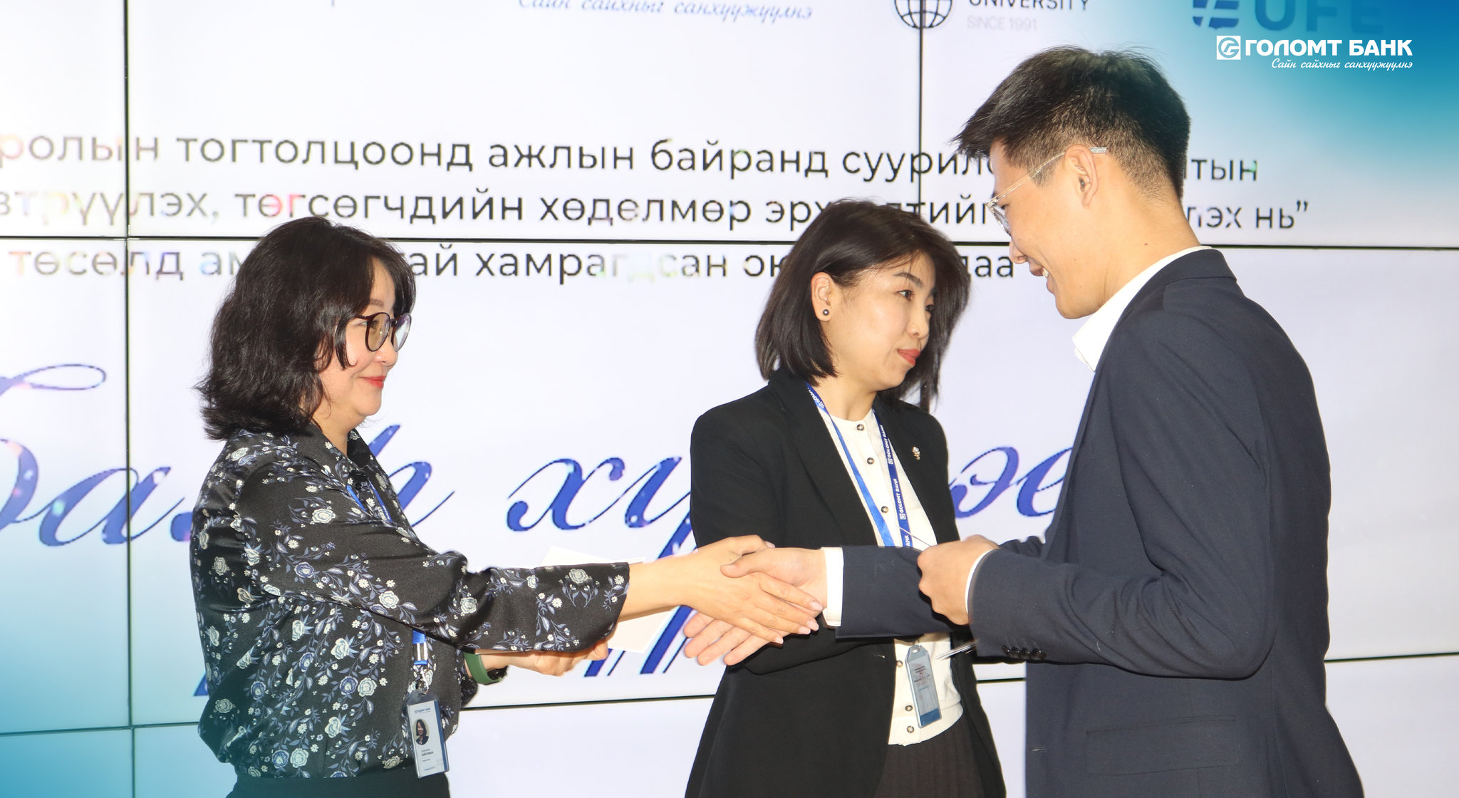 Монгол Улсын дээд боловсролын тогтолцоонд шинэ төгсөгчдийн ажил эрхлэлтийг нэмэгдүүлэх, чадавхжуулах зорилго бүхий тус төслийн 2022-2023 оны хичээлийн жилд “Банк, даатгал” хөтөлбөрт амжилттай хамрагдсан СЭЗИС болон Отгонтэнгэр их сургуулийн 12 оюутан сургуулиа төгсөөд Голомт банканд мэргэжлээрээ ажиллах урилга хүлээн авлаа. Оюутнуудад ажлын байрны урилгыг 5-р сарын 25-ны өдөр Голомт банкны Хүний нөөцийн удирдлагын газрын захирал Г.Уянга болон Иргэдийн банкны газрын захирал Ц.Байгальмаа нар гардуулан өгсөн юм.