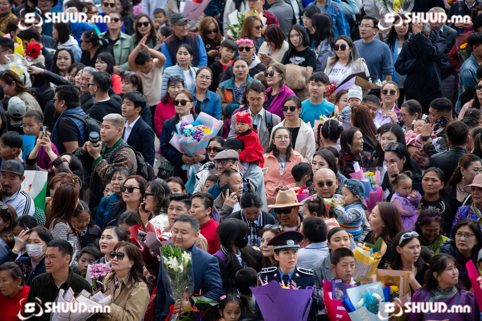 Зарим нь гэр бүл, ах дүү нараараа тойрон зогсч, оргилуун дарс тулгаж, баяр хүргэцгээх аж. Нийслэлийн төв талбай эх үрс, гэр бүлийн аз жаргалаар амьсгалж, одон зүүсэн ээжүүдээр гоёж эхэлсэн нь энэ. Хаашаа л харна хүүхдүүдийн инээд цангинаж, баярын нулимс унагасан дулаахан уур амьсгал талбайг нөмрөнө.