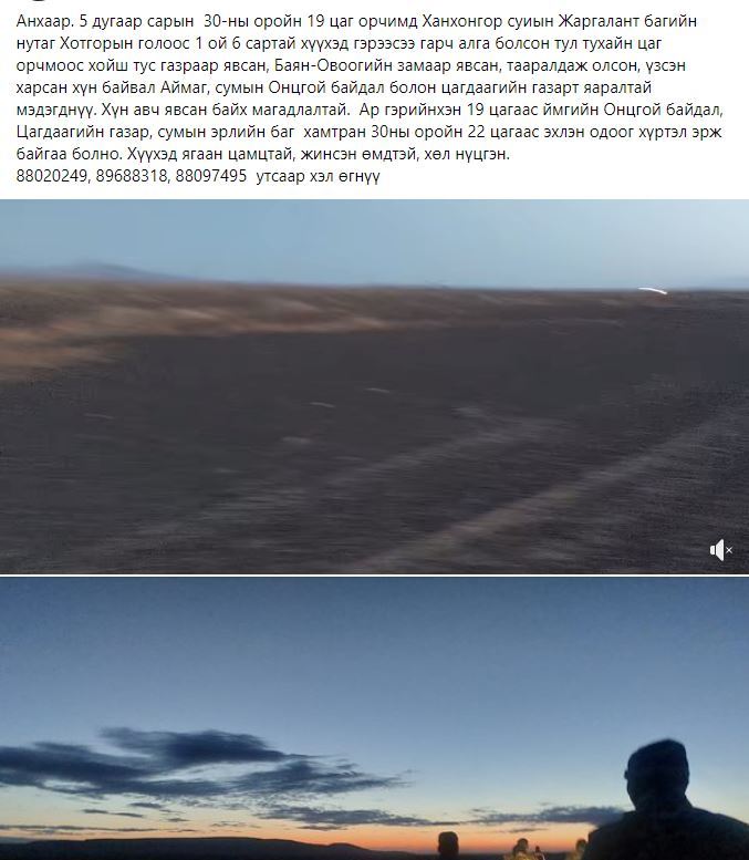 Өмнөговь аймгийн Ханхонгор сумын Жаргалант багийн нутаг Хотгорын гол орчмоос алга болсон ОЙ зургаан сартай хүүхдийг эрэн хайж байна.