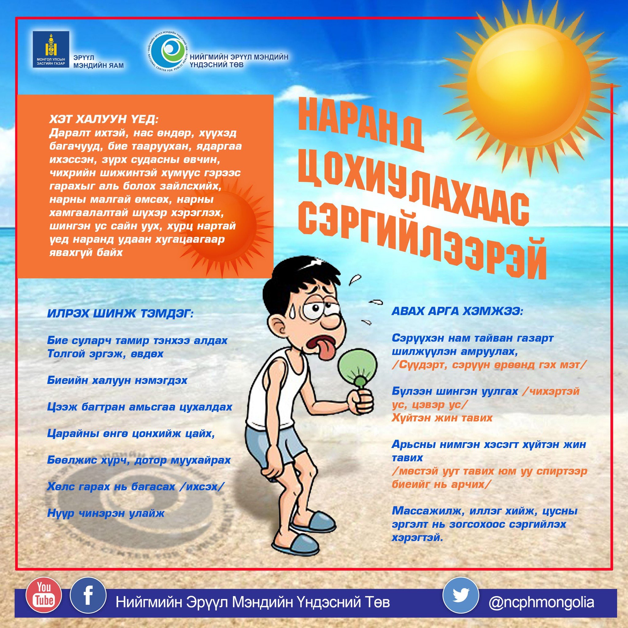 Нийгмийн эрүүл мэндийн үндэсний төвөөс наршилтын үед илрэх шинж тэмдэг, авах арга хэмжээний талаар зөвлөмж гаргажээ.
