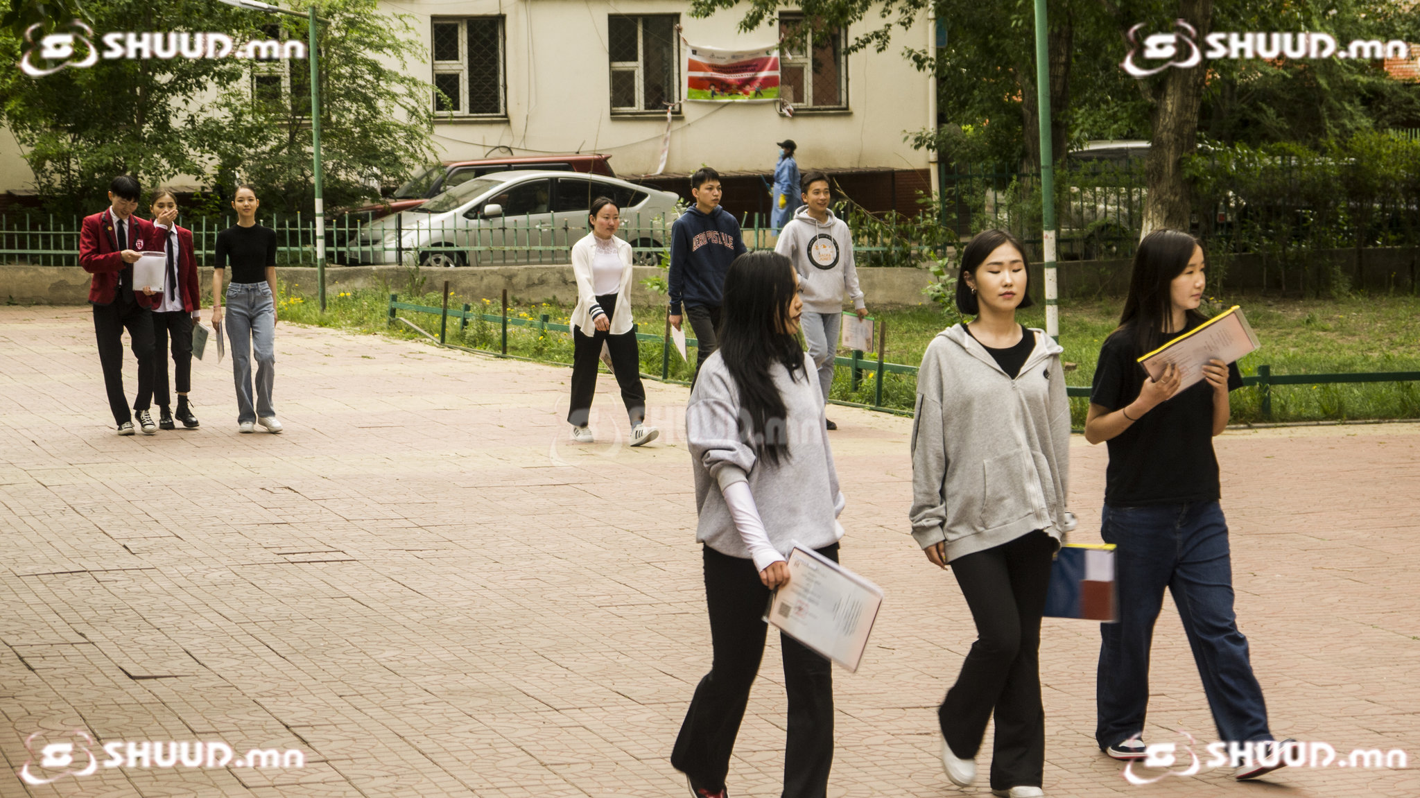 Харин цааш алхаад явж байтал хоёр, гурваараа хуваагдан сууж байгаа хүүхдүүд харагдана. Бид ч тухайн хүүхдүүдийг чиглэн ярилцахаар очлоо. Тэдний хувьд СУИС-ийн Бадмаараг ахлах сургуулийн сурагчид байв.