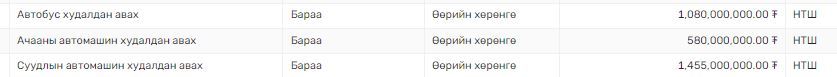 Тодруулбал, Авто тээврийн үйлчилгээний төвийн хэрэгцээнд НЭГ автобусыг 140 сая төгрөгөөр, Баянбуурал амралтын хэрэгцээнд НЭГ автобусыг 200 сая төгрөгөөр, Замын ангиудын хэрэгцээнд 11 УАЗ фургоныг 740 сая төгрөгөөр, Сайншанд татах хэсэгт НЭГ УАЗ фермер машиныг 100 сая төгрөгөөр худалдан авах юм.