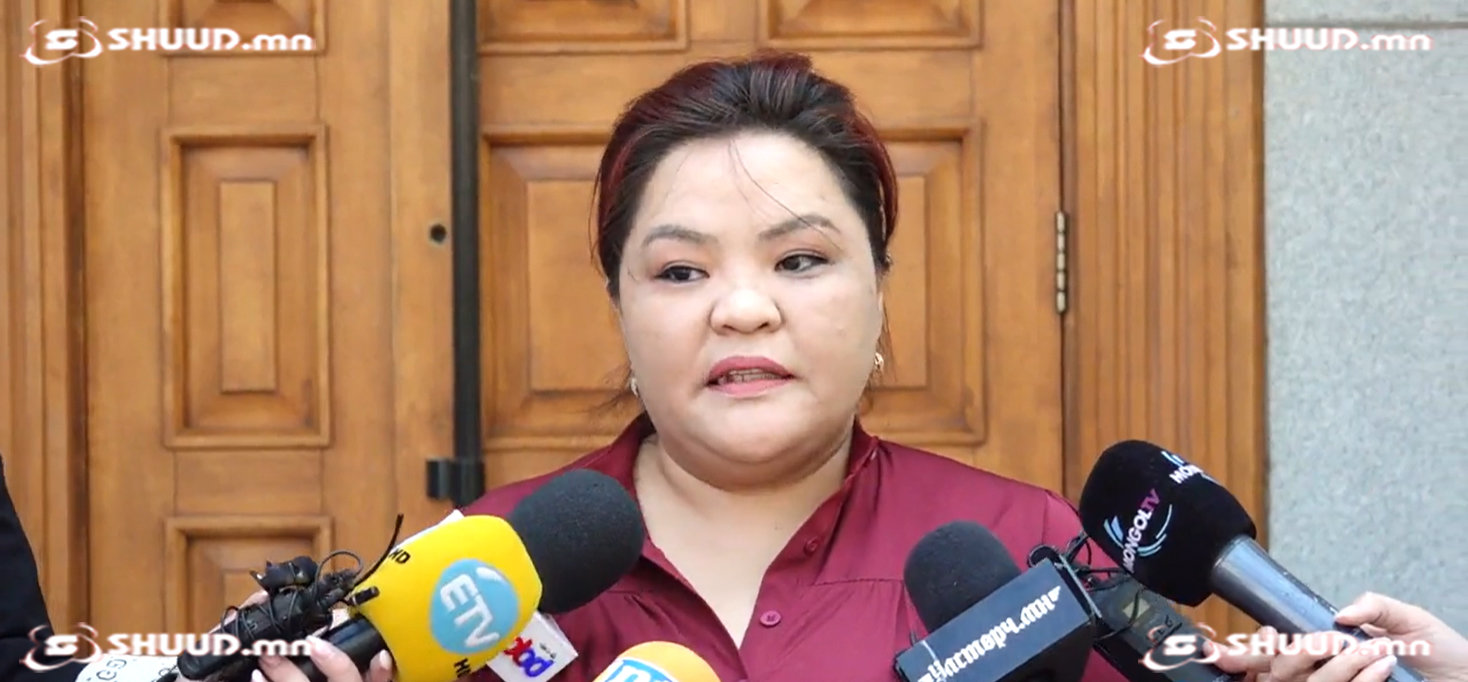 Ээлтэй Ертөнц ТББ ын тэргүүн Т.Туяажаргал НХХЯ-ны үүдэнд мэдээлэл хийлээ.