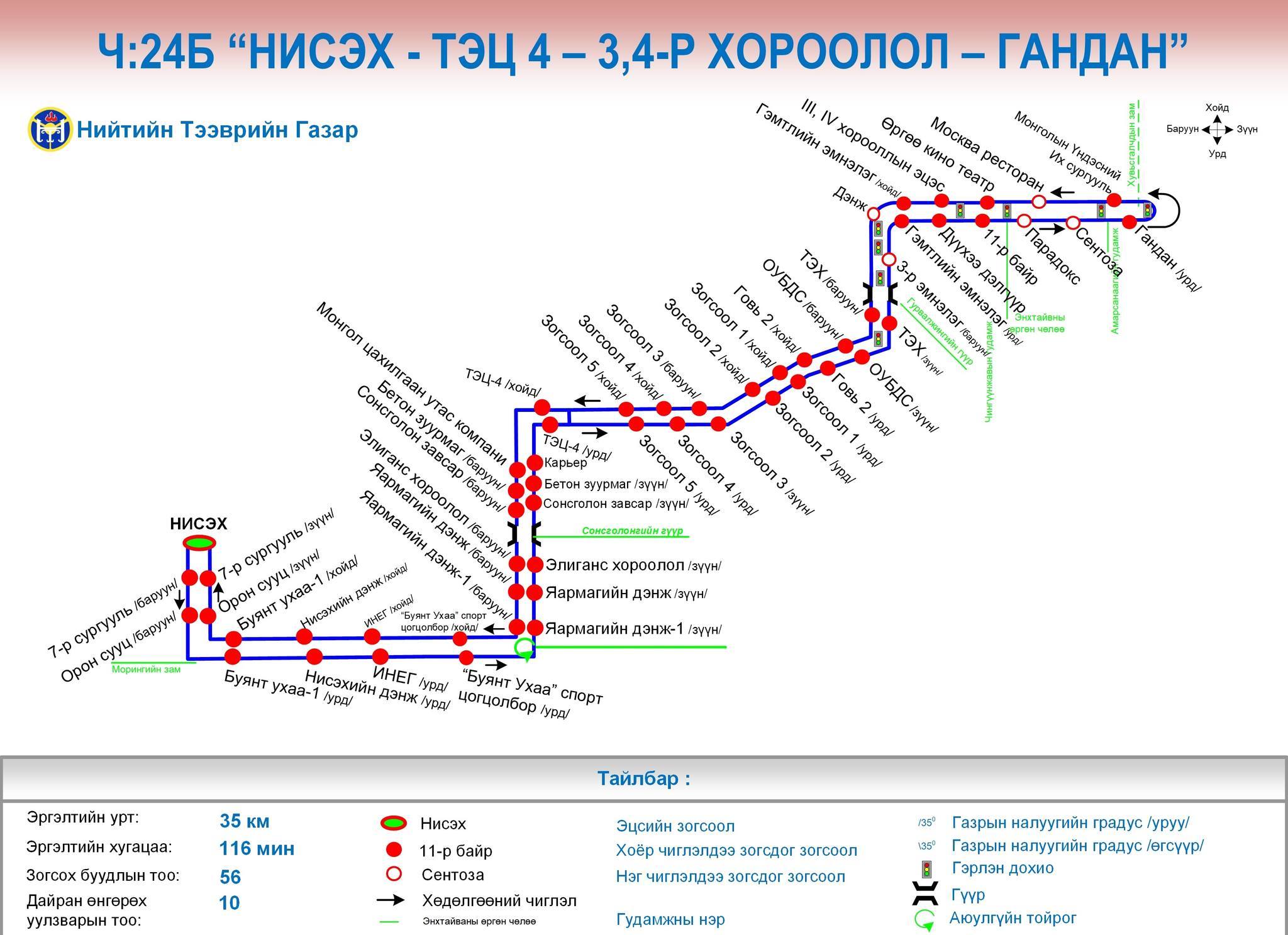 1. Ч:24Б “ТЭЦ-4 - 3,4-р хороолол - Гандан” чиглэлийг Ч:24Б “Нисэх-ТЭЦ-4 - 3,4-р хороолол - Гандан” болгон өөрчилж өдөрт нийтийн тээврийн үйлчилгээний 8 тээврийн хэрэгсэл 14 минутын интервалтай ажиллана.