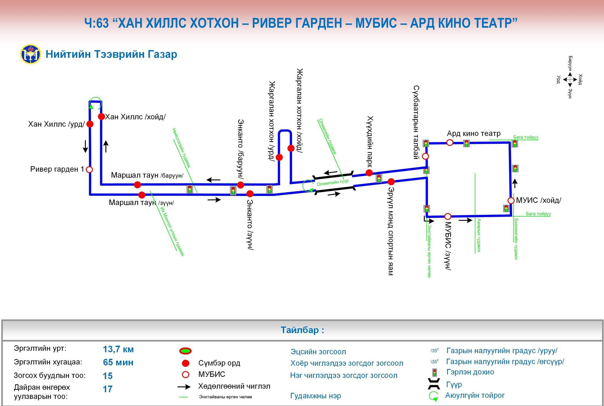 3. Ч:63А “Хан хилсс хотхон-Ривер гарден хотхон-МУБИС-Ард кино театр” чиглэлд дундын “Жаргалан хотхон” хойд, урд автобусны зогсоол нэмэгдэж, Ч:63 “Хан хилсс хотхон-Ривер гарден хотхон-МУБИС-Ард кино театр” болгон өөрчилж, өдөрт 6 тээврийн хэрэгсэл 10 минутын интервалтай ажиллана.