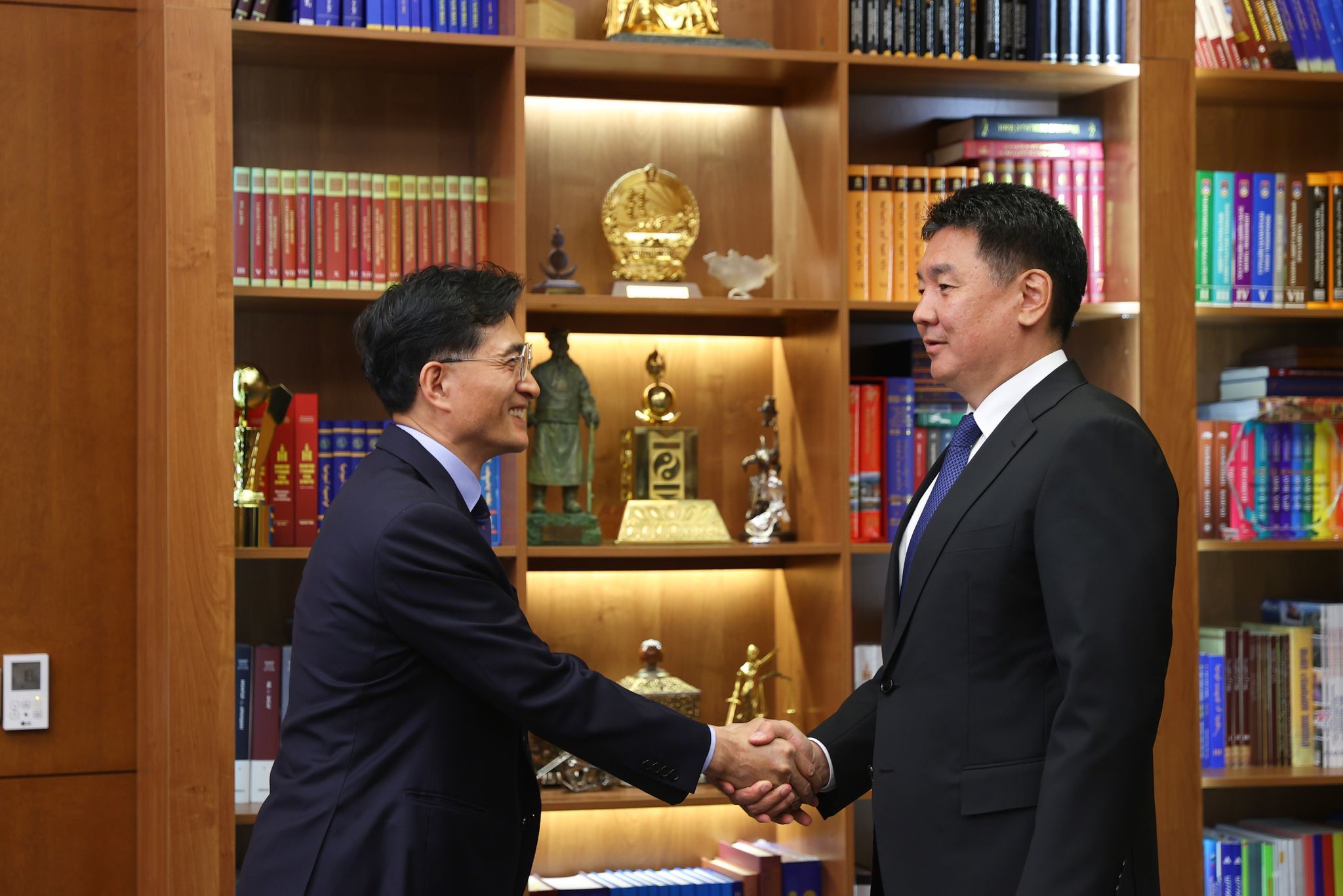 Монгол Улсын Ерөнхийлөгч Ухнаагийн Хүрэлсүх БНСУ-ын “Юхан-Кимберли” компанийн Ерөнхийлөгч Чин Жэ Сон тэргүүтэй төлөөлөгчдийг хүлээн авч уулзав.
