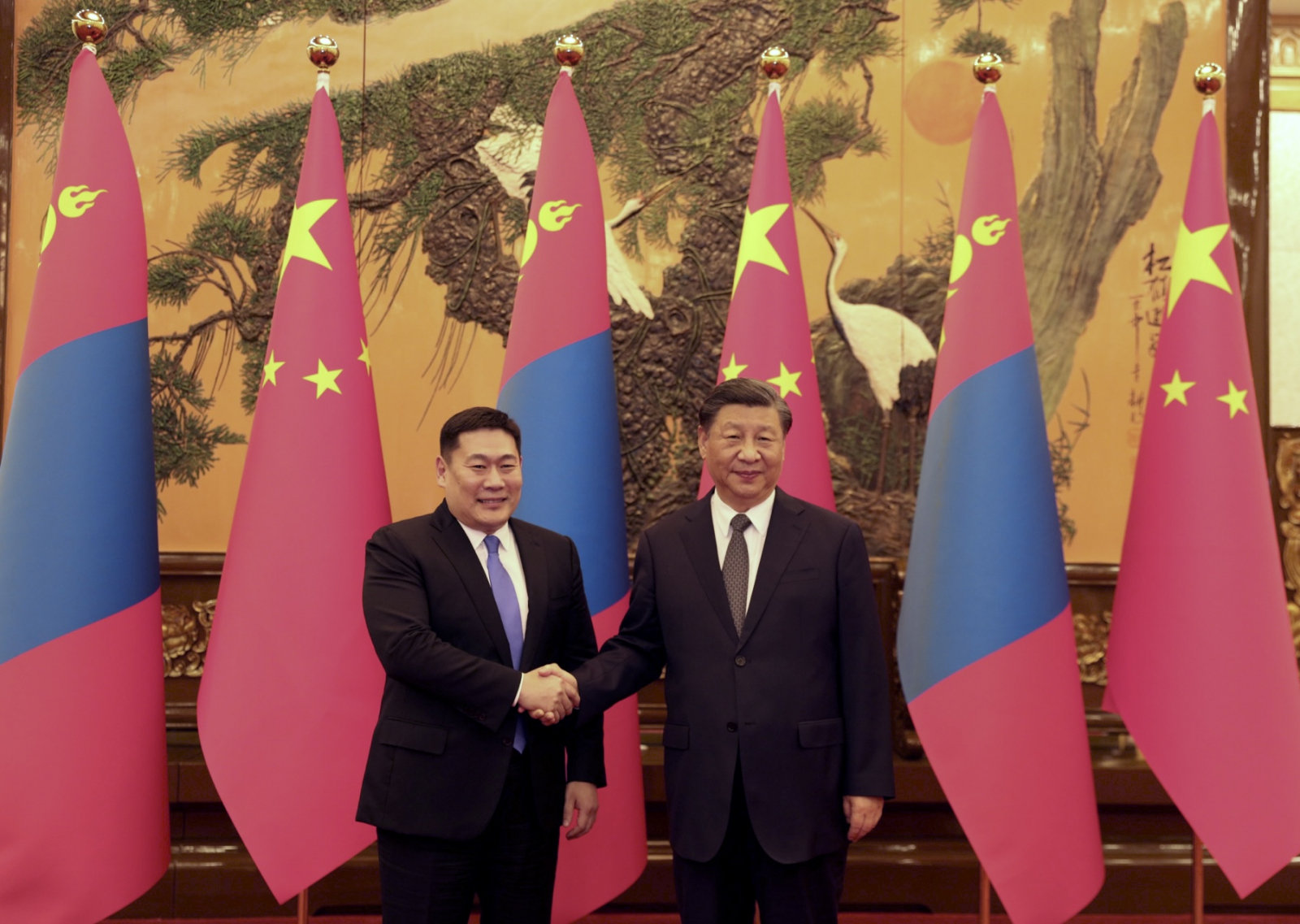 БНХАУ-ын Дарга Ши Жиньпин Монгол, Хятад нь Иж бүрэн стратегийн түншлэл бүхий найрсаг хөрш орнуудын хувьд хоёр улсын тусгаар тогтнол, бүрэн эрхт байдлыг харилцан хүндэтгэх, харилцан ашигтай хамтын ажиллагаагаа өргөжүүлэн гүнзгийрүүлж, олон улсад жишиг болохуйц хөрш орнуудын найрсаг харилцааг хөгжүүлэх, уур амьсгалын өөрчлөлт, цөлжилт, шар шороон шуургатай тэмцэх, аялал жуулчлалыг хөгжүүлэх, Монгол Улсын Засгийн газрын дэвшүүлэн хэрэгжүүлж буй “Шинэ сэргэлтийн бодлого”-ын хүрээнд дэвшүүлсэн бүтээн байгуулалтын төслүүдийг хэрэгжүүлэхэд бүх талаар дэмжиж, хамтран ажиллахаа илэрхийллээ.