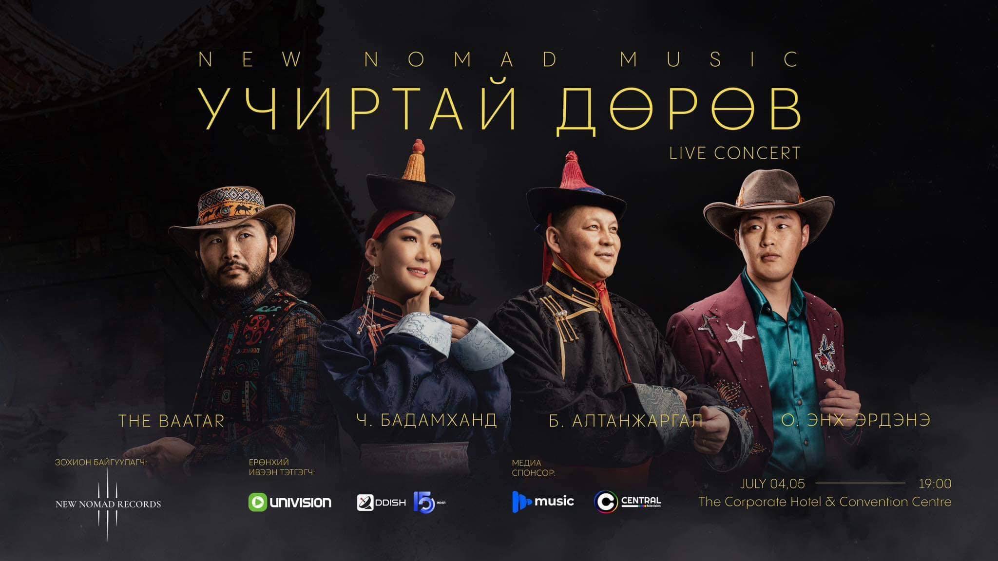 Наадам дөхсөн дэлгэр цаг маань өнөө цаг ч юм билүү? Эсвэл ирээдүй цаг ч юм уу? Ямартай ч учрыг нь үргэлжлүүлэн түгээх “УЧИРТАЙ ДӨРӨВ” ардын дууны амьд тоглолт таныг нэгэн зууны цаг хугацаагаар аялуулах юм.