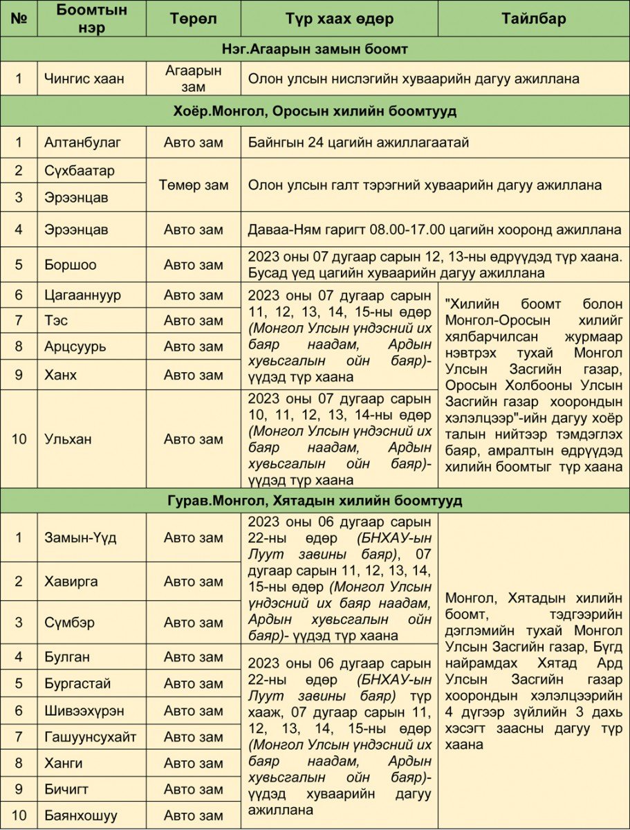Монгол Улсын Үндэсний их баяр наадам, Ардын хувьсгалын 102 жилийн ойн баярын өдрүүдэд буюу энэ сарын 11-15-ны өдрүүдэд Замын-Үүдийн автозамын боомт ажиллахгүй, хил түр хугацаагаар хаана