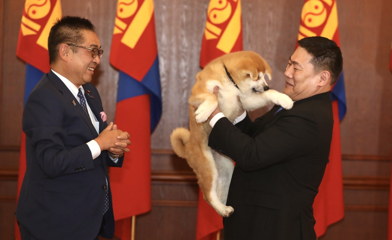 Энэ үеэр ноён Т.Эндо Япон Улсын Ерөнхий сайд асан Ё.Сүгагийн бэлэг Кизүна хэмээх Акита үүлдрийн нохойг Ерөнхий сайд Л.Оюун-Эрдэнэд гардуулан өглөө. Кизүна нь гурван сартай эр гөлөг бөгөөд түүний нэр эв эеийн холбоо гэсэн утгатай юм байна. Ерөнхий сайдыг "Токио-2020" зуны олимпын нээлтэд оролцох үеэр гадаад улсад хийж буй анхны айлчлалаа Япон Улсаас эхлүүлж, цар тахлын хүнд нөхцөлд олимпын наадам зохион байгуулах түүхэн сорилттой үед хүрэлцэн ирсэнд талархан, эв найрамдал, нөхөрлөлийн бэлгэ тэмдэг болгож, Акита үүлдрийн нохой бэлэглэхээ илэрхийлсэн юм. Тухайн үед цар тахлын халдварын эрсдэлээс сэргийлж тус үүлдрийн нохойны чихмэлийг Япон Улс дахь Монгол Улсын Элчин сайдын яамаар дамжуулан Ерөнхий сайдад хүргүүлж байв.