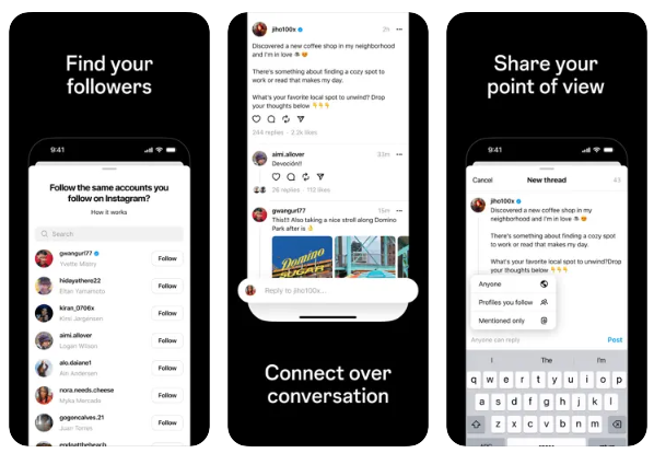 Threads нь Твиттертэй адил олон нийтийн сүлжээ бөгөөд текстэн мэдээлэл оруулж, түүнд хариулж, бусдын пост дээр лайк дарж, хуваалцах боломжтой гэнэ. Энэ сүлжээг Инстаграмтай холбосон тул Инстаграмын хэрэглэгчид Threads рүү профайл болон дагагчдаа шилжүүлж болох аж.
