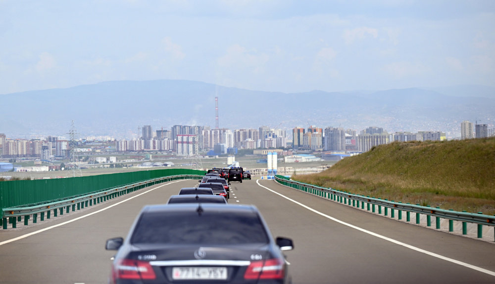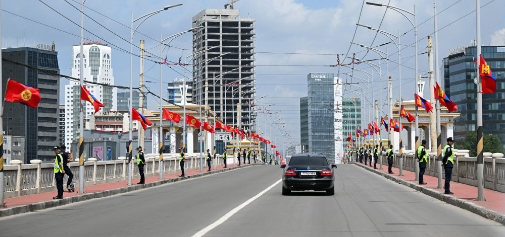 Киргизийн Ерөнхийлөгчийн цуваа нисэх буудлаас хөдлөж байна.