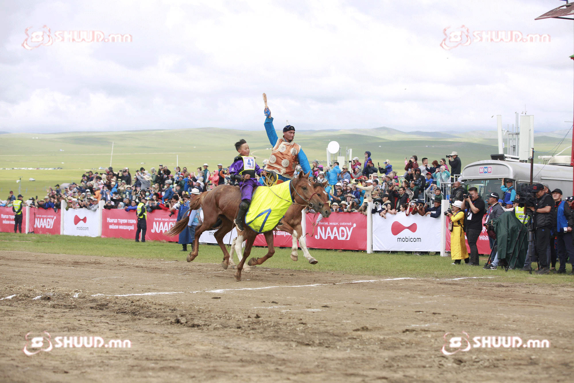Үндэсний их баяр наадмын хурдан соёолон морьд барианд орлоо. Гарааны зурхайгаас 122 морь эргэснээс Дархан-Уул аймгийн Г.Ариунболдын 909 дугаартай хурдан хээр үрээ түрүүлэн ирж, тод магнай торгон жолоогоо өргүүллээ.
