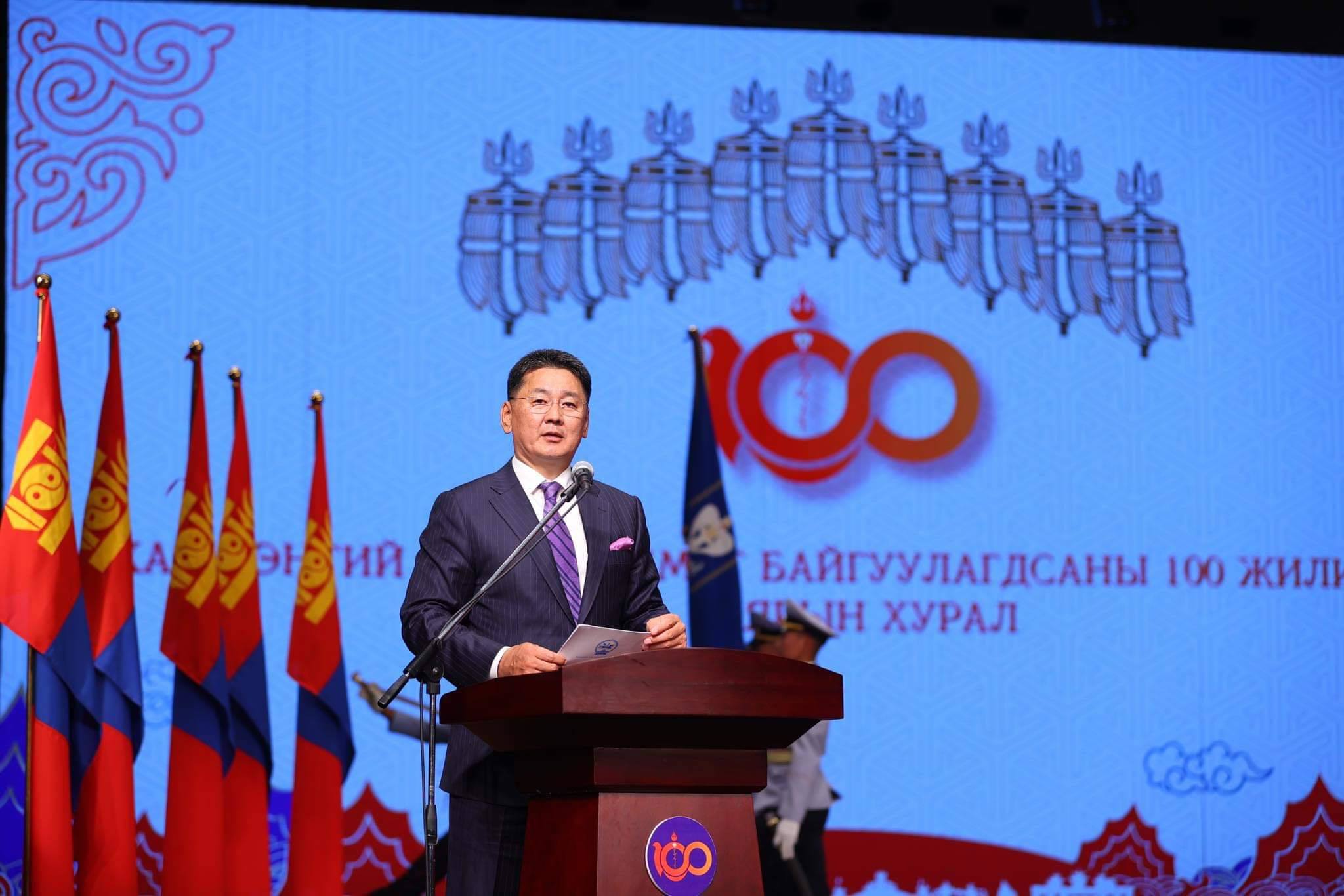 Монгол Улсын Ерөнхийлөгч өнө эртнээс уламжлалтай төрт улсаа сэргээн мандуулж, Их Монгол Улсыг байгуулан Монголын Эзэнт гүрний сүр хүчийг тунхаглаж, дэлхий дахинд Монголын их амар амгаланг тогтоон, монгол үндэстний суу алдрыг бадраасан Их Эзэн Чингис хааны төрсөн нутгийн гал голомтыг сахин суугаа Хан Хэнтий нутгийн түмэн олонд Хан Хэнтий уулын аймаг байгуулагдсаны түүхт 100 жилийн ойн баярын мэндийг дэвшүүллээ.