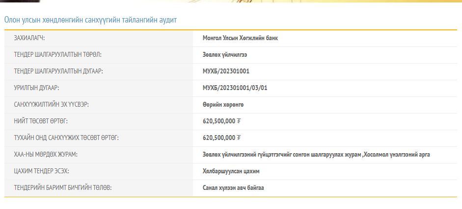 Тус банк 2021 нь нийт 330 сая төгрөгөө аудит хийлгэсэн бол 2022 онд 349 сая төгрөгөөр аудит хийлгэсэн байдаг.