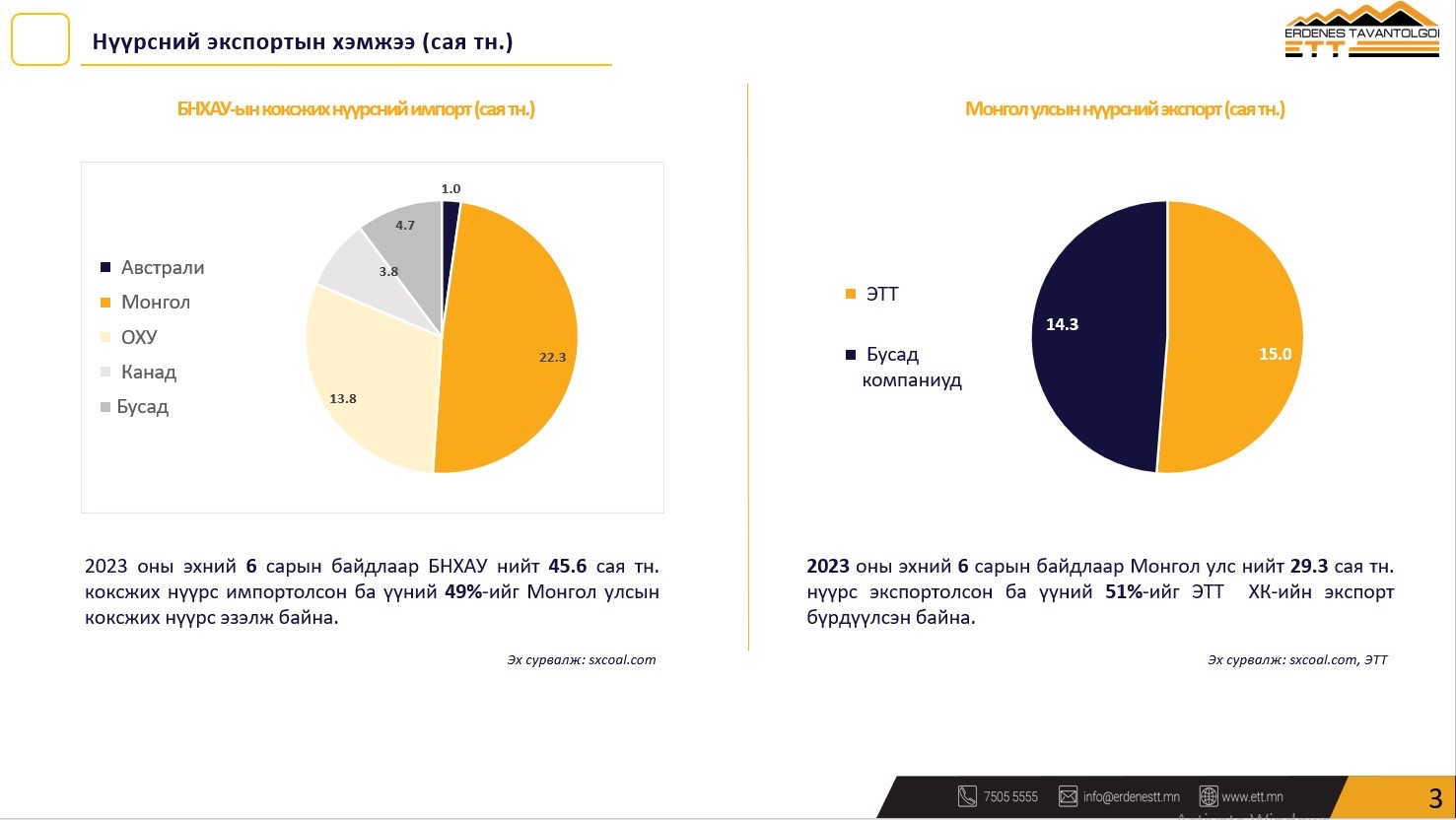 Эрдэнэс Тавантолгой: 14.4 сая тонн нүүрс борлуулав