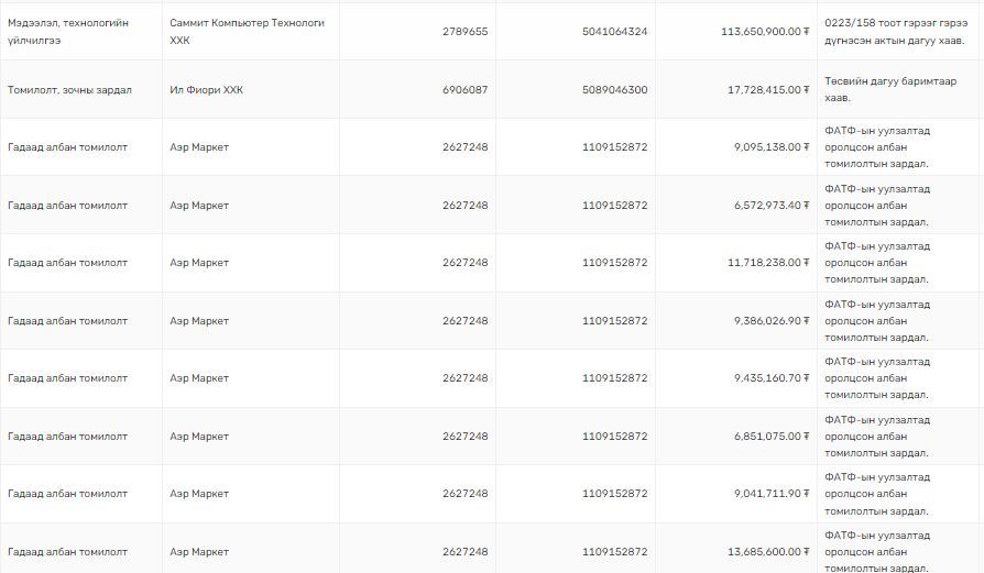 Харин Санхүүгийн зохицуулах хороо болон Татварын Ерөнхий газар одоогоор өнгөрсөн сарын мэдээллээ Шилэн дансандаа оруулаагүй байна.