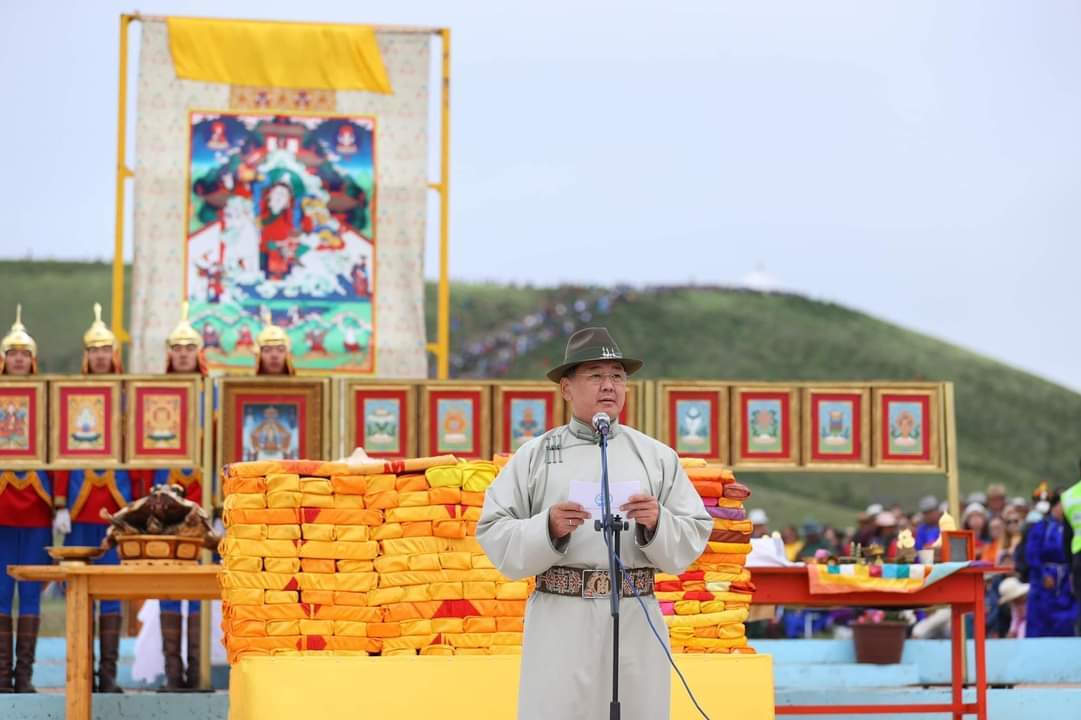 Монгол Улсын Төрийн далбаа, Бүх цэргийн Их хар сүлдний Дорнын элч сүлд, Сүхбаатар аймгийн далбаа, Чингис хааны хөрөг болон Төрийн долоон эрдэнийг буцааж залснаар Алтан овооны тэнгэрийг тайх төрийн тахилгын ёслол өндөрлөв.