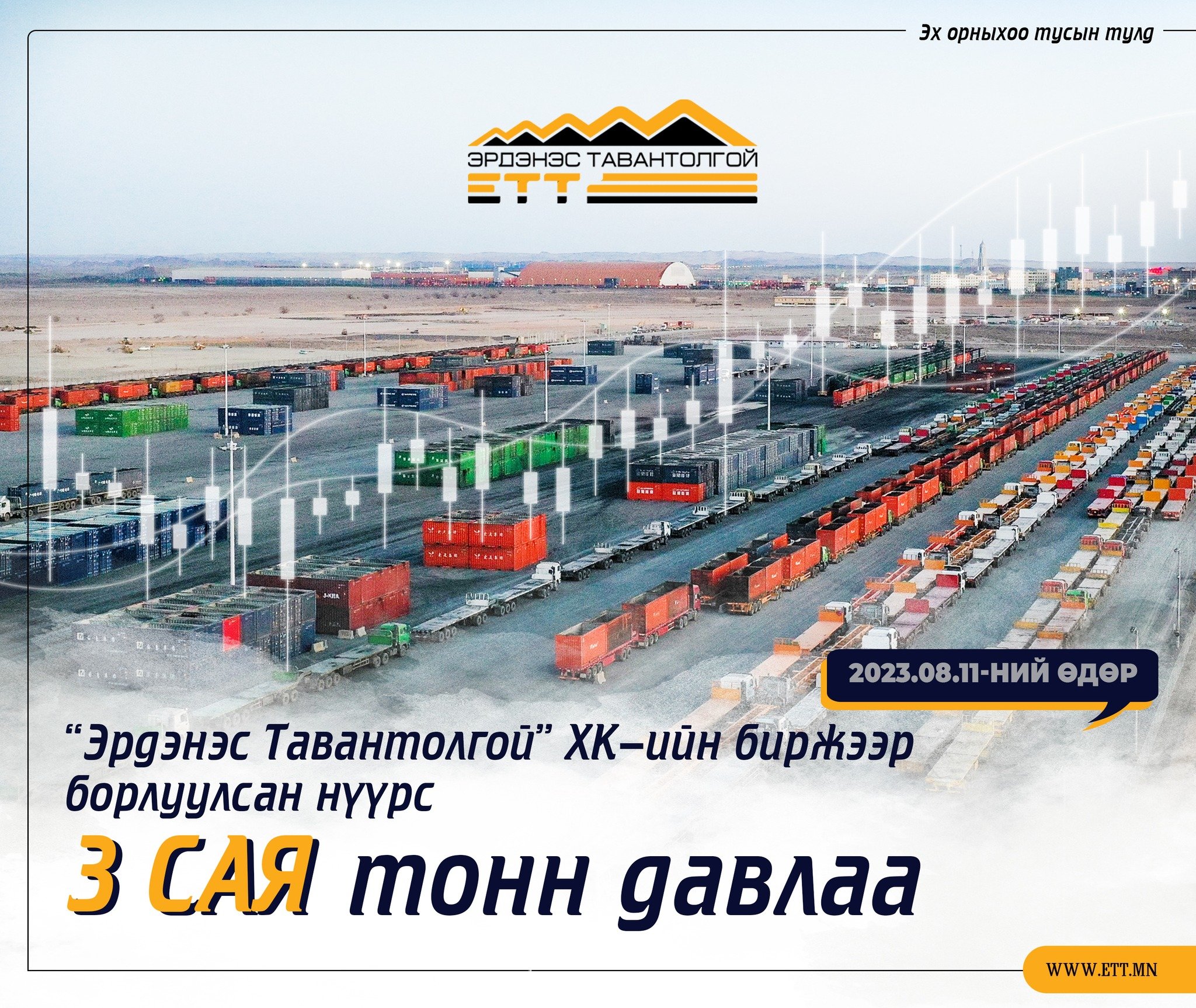 Энэ удаагийн арилжаанд 4 худалдан авагч оролцож нийт 50 багц буюу 320 мянган тонн сул коксжих нүүрсийг тонн тутмыг 97.1 ам.доллароос дуудаж 124.6 ам.доллароор борлуулав. Ингэснээр “Эрдэнэс Тавантолгой” ХК цахим арилжаагаар 346.7 сая ам.долларын үнэлгээ бүхий 3,078.4 мянган тонн нүүрсийг арилжаалж БИРЖЭЭР БОРЛУУЛСАН НҮҮРСНИЙ ХЭМЖЭЭ 3 САЯ ТОНН ДАВЛАА.