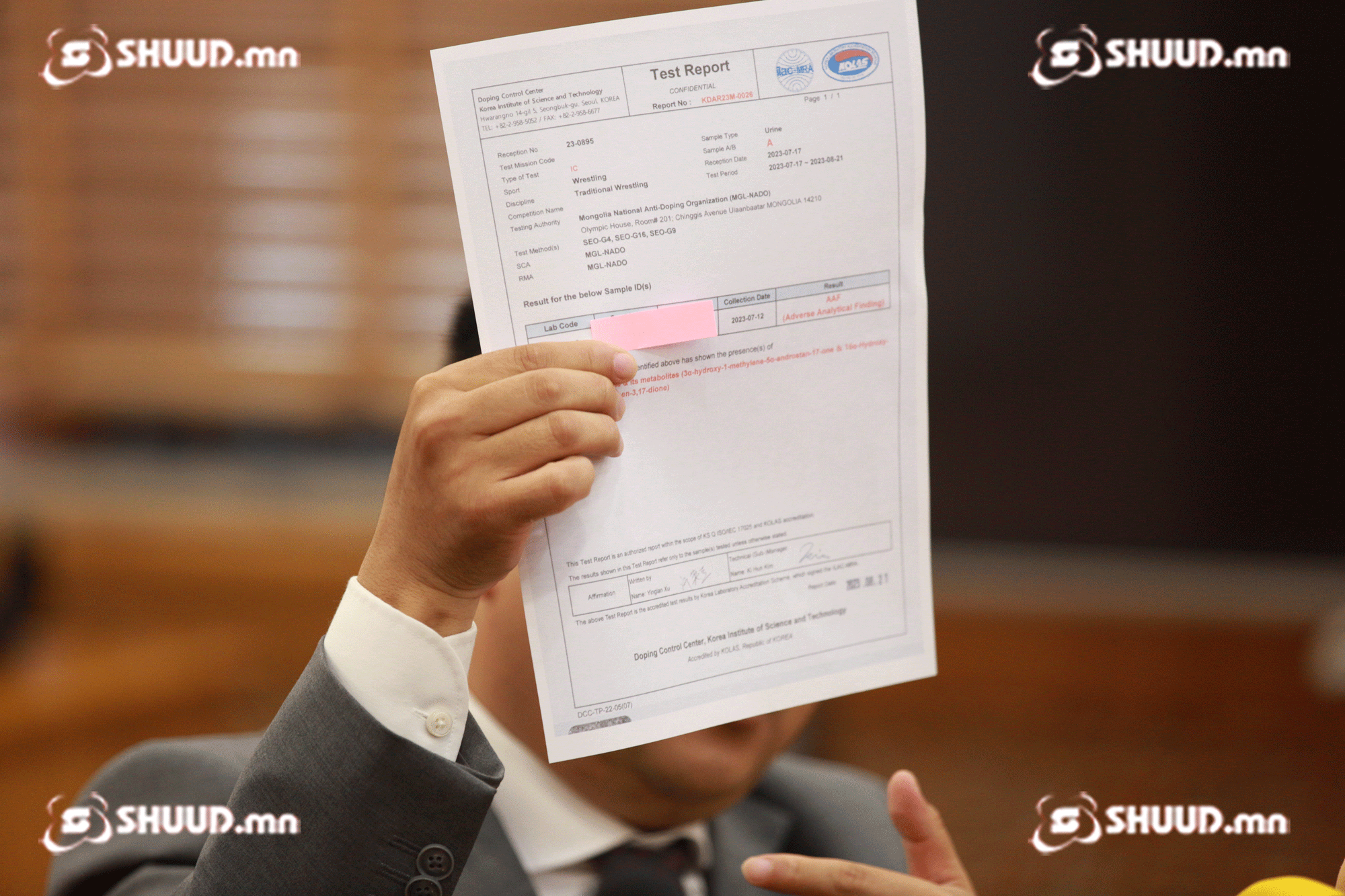 Монголын Үндэсний допингийн эсрэг байгууллагын гүйцэтгэх захирал Д.Мөнхболд "А, Б сорьц нь хоёулаа шинжилгээний төвд очсон байгаа. Түүнээс А сорьцыг онгойлгоод эхний шинжилгээний хариу гарсан. Хэрэв тамирчин өөрөө А сорьцын шинжилгээгээ зөвшөөрөхгүй гэвэл Б сорьцоо нээгээд шинжилгээгээ хийлгэх боломжтой" гэлээ.