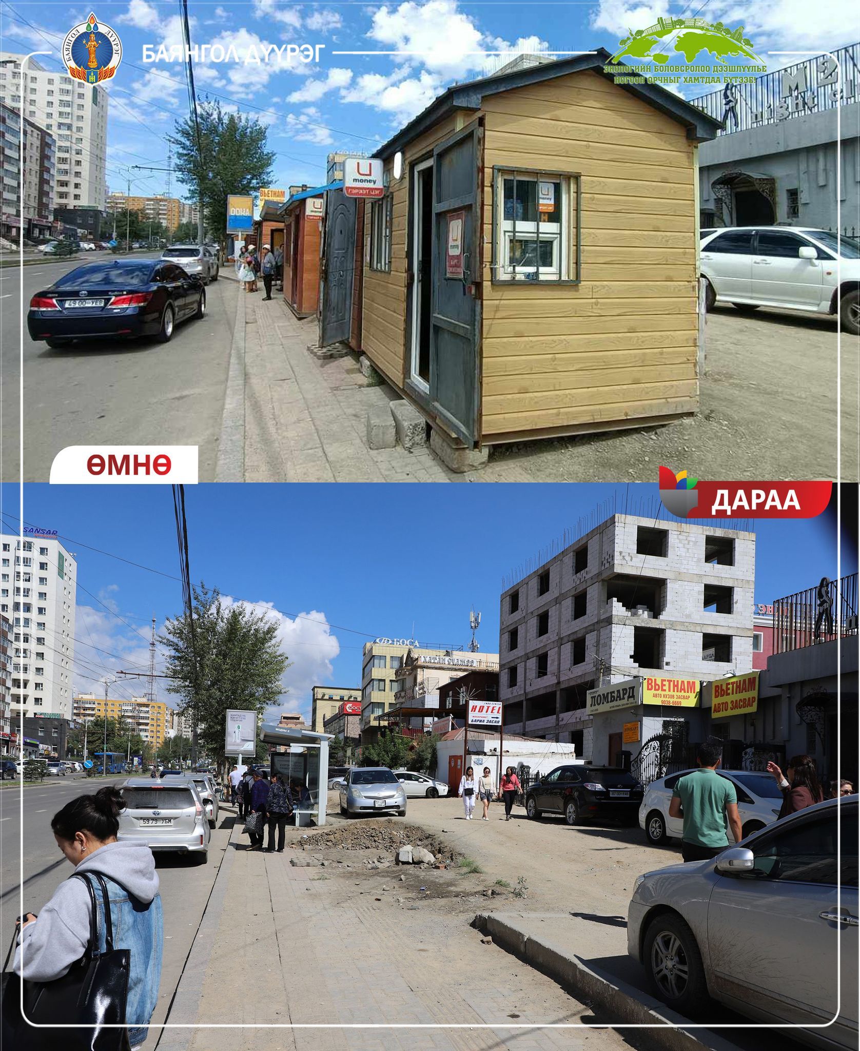 Баянгол дүүргийн 16 дугаар хорооны нутаг дэвсгэр, Гандантэгчэнлин хийдийн баруун тал буюу “Макс Молл” их дэлгүүрээс дээш өгсөх замд байдаг автобусны буудлын орчимд зөвшөөрөлгүй байрлуулсан 10 ТҮЦ-ийг нүүлгэлээ.