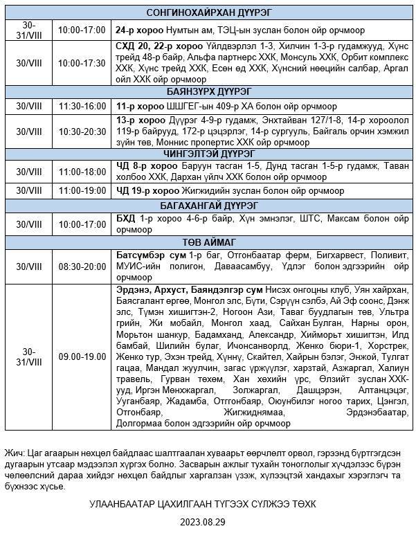 Өнөөдөр буюу 08 дугаар сарын 30-ны лхагва гаригт дараах байршлуудад цахилгаан хязгаарлана.