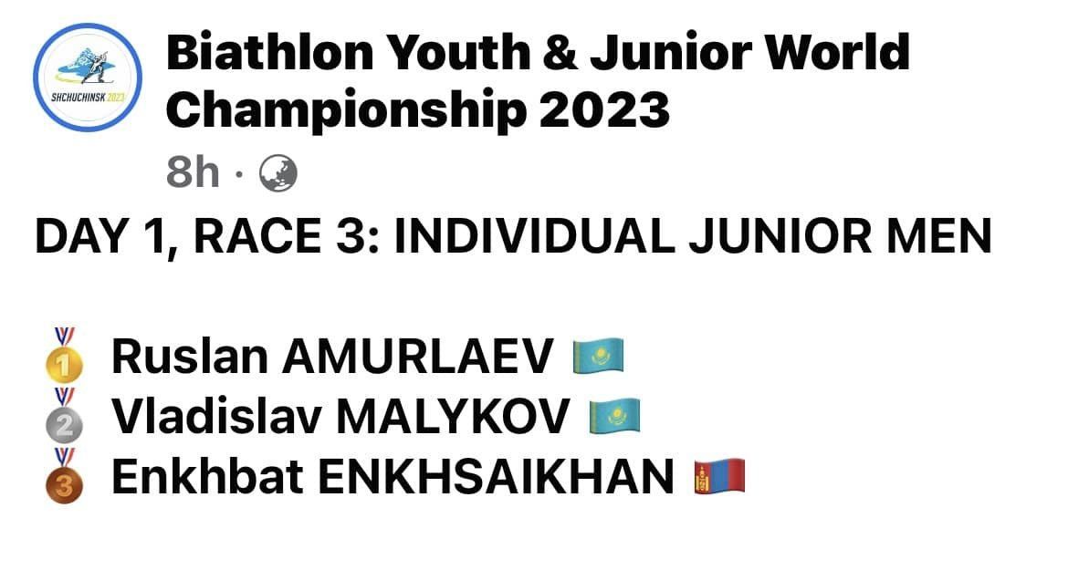 Казахстаны Шучинск хотноо болж буй зуны биатлоны идэрчүүдийн болон залуучуудын дэлхийн шалгаруулах тэмцээний залуучуудын ганцаарчилсан төрөлд Монголын биатлоны шигшээ багийн тамирчин Энхбатын Энхсайхан хүрэл медаль хүртлээ.