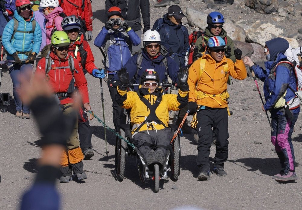 Ерэн настай уулчин Фүжи уулын оргилд тэргэнцэртэйгээр гарчээ